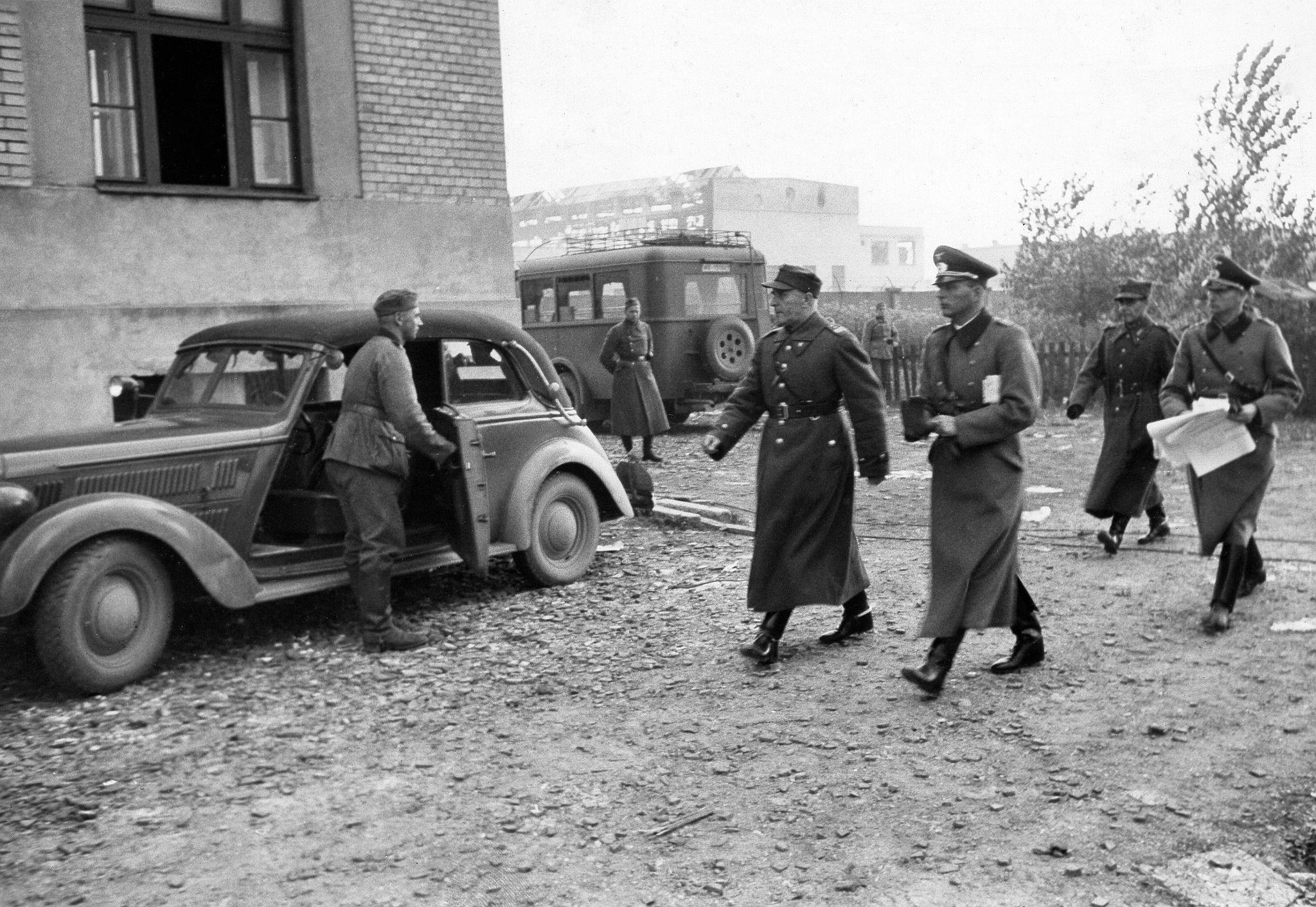 Переговоры о капитуляции на заводе Skoda-Motor в Ракове недалеко от Варшавы. Прибытие польских переговорщиков.