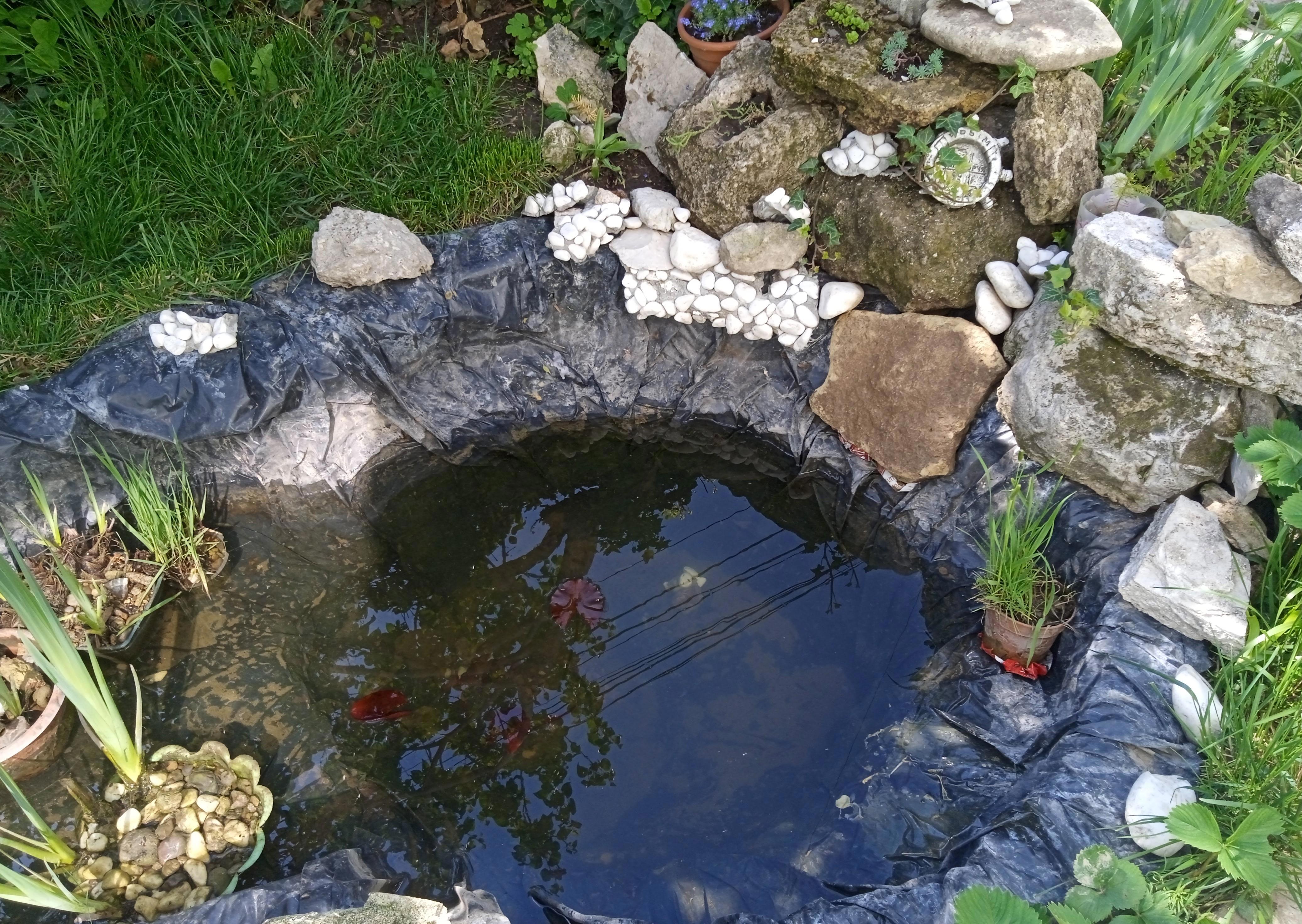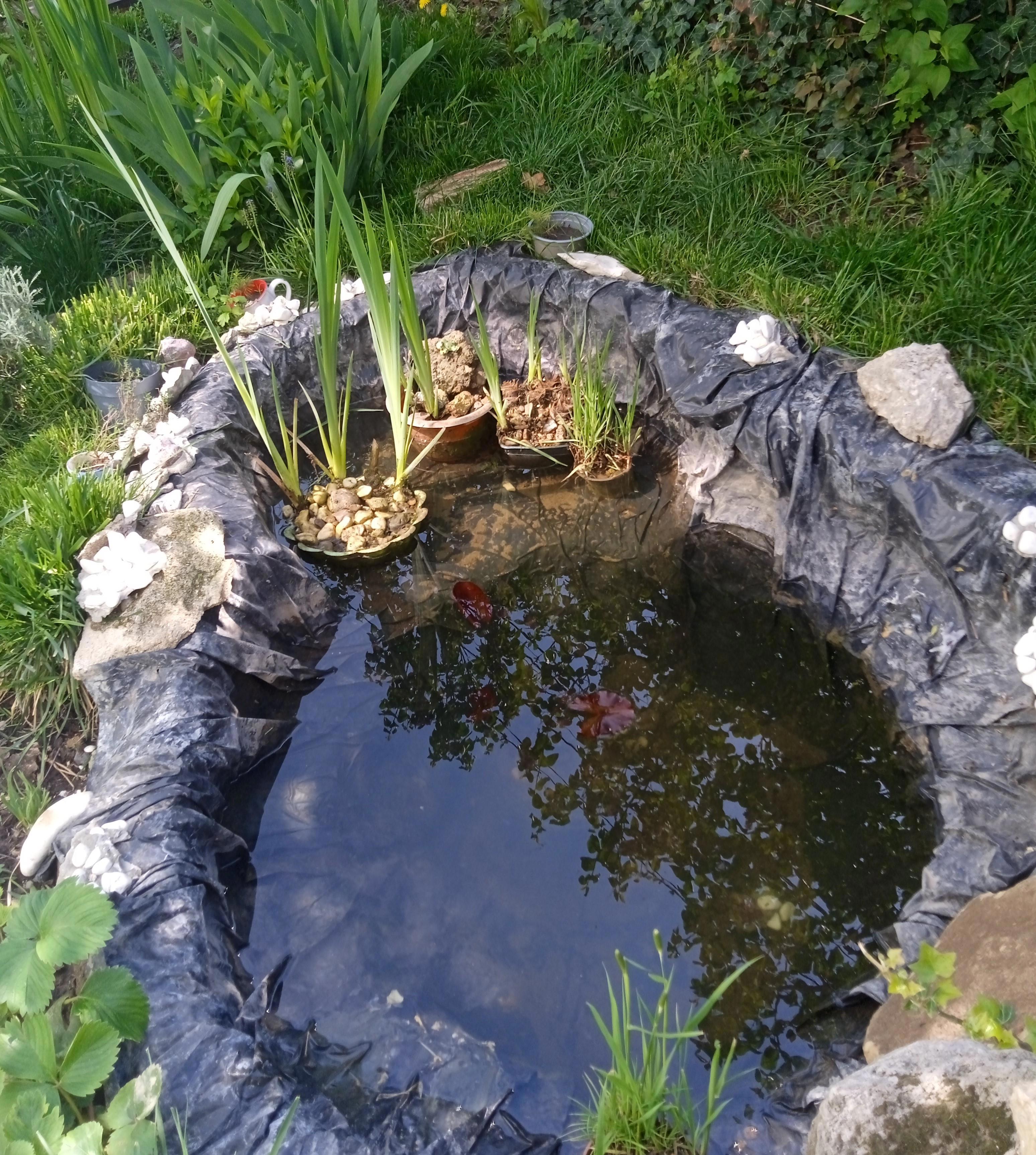 И даже мини пруд (не доделанный) с камышом, водным ирисом и лилией