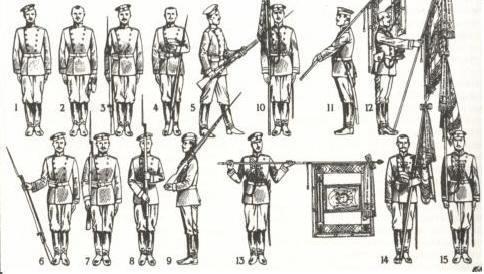 Второй прием. Оставляя приклад у правой ступни, правой рукой резко уклонить винтовку штыком вправо по линии груди так, чтобы локоть этой руки был немного отделен от корпуса, рука слегка согнута. Одновременно повернуть голову в сторону приветствуемого лица (номер 6) и, провожая его взглядом, поворачивать вслед за ним голову.