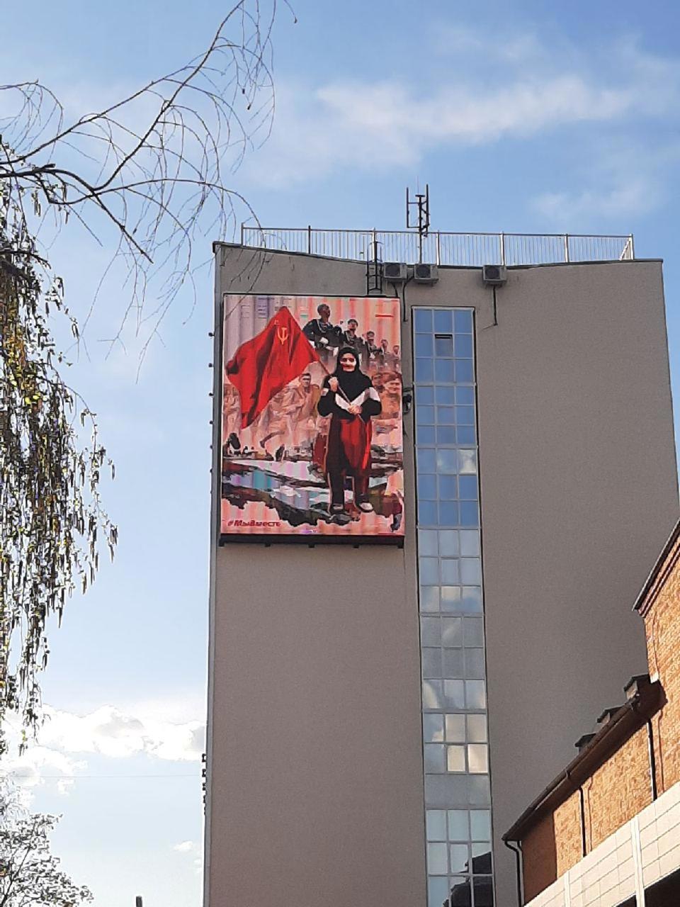 Конечно же впереди "Бабуля". Росписи, муралы, скульптуры, новый символ Русского Сопротивления шагает по стране.
