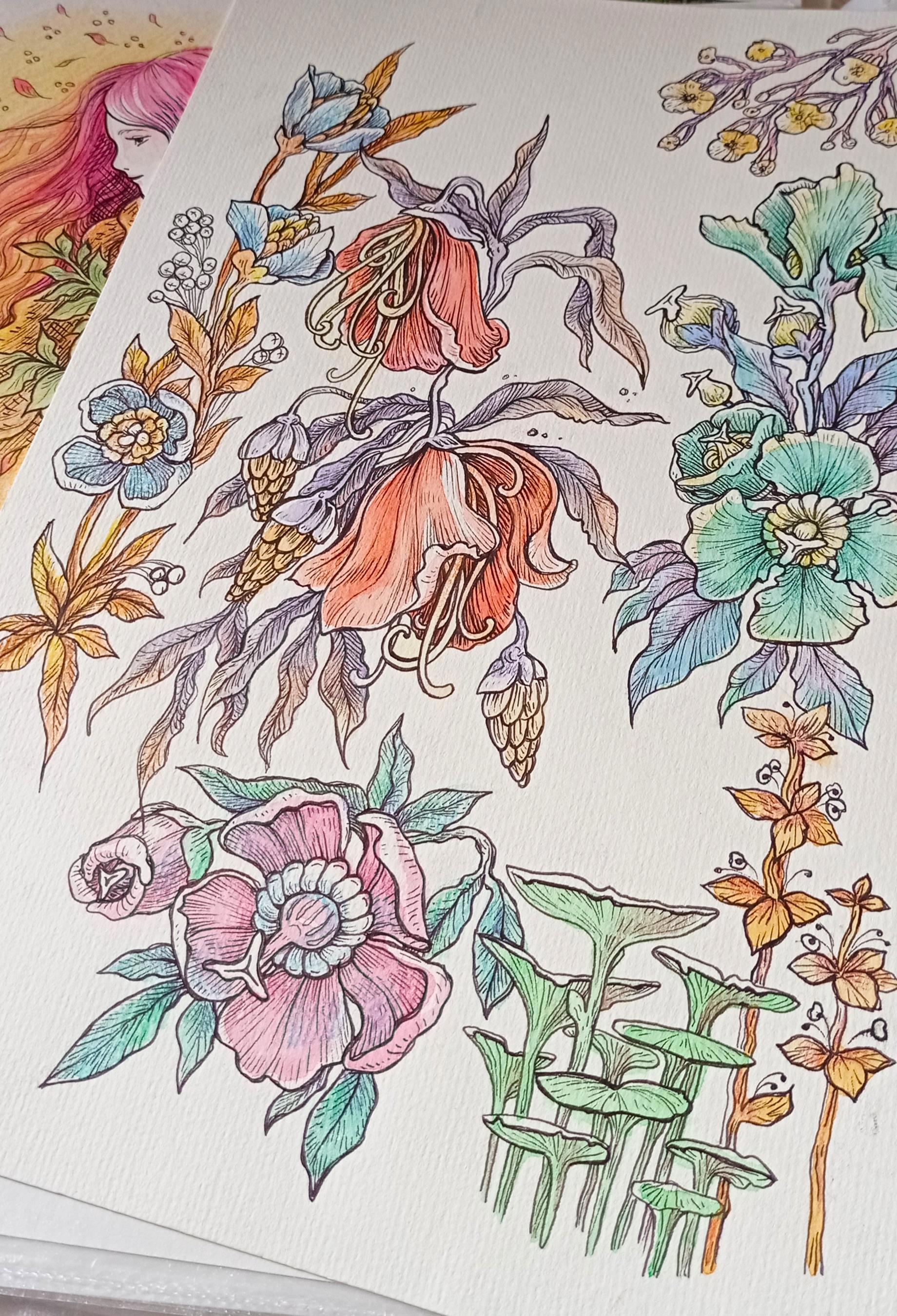 На прошлогодних набросках растения немного фантастические, неземные🖤 Рисовала без наброска, сразу чернилами.