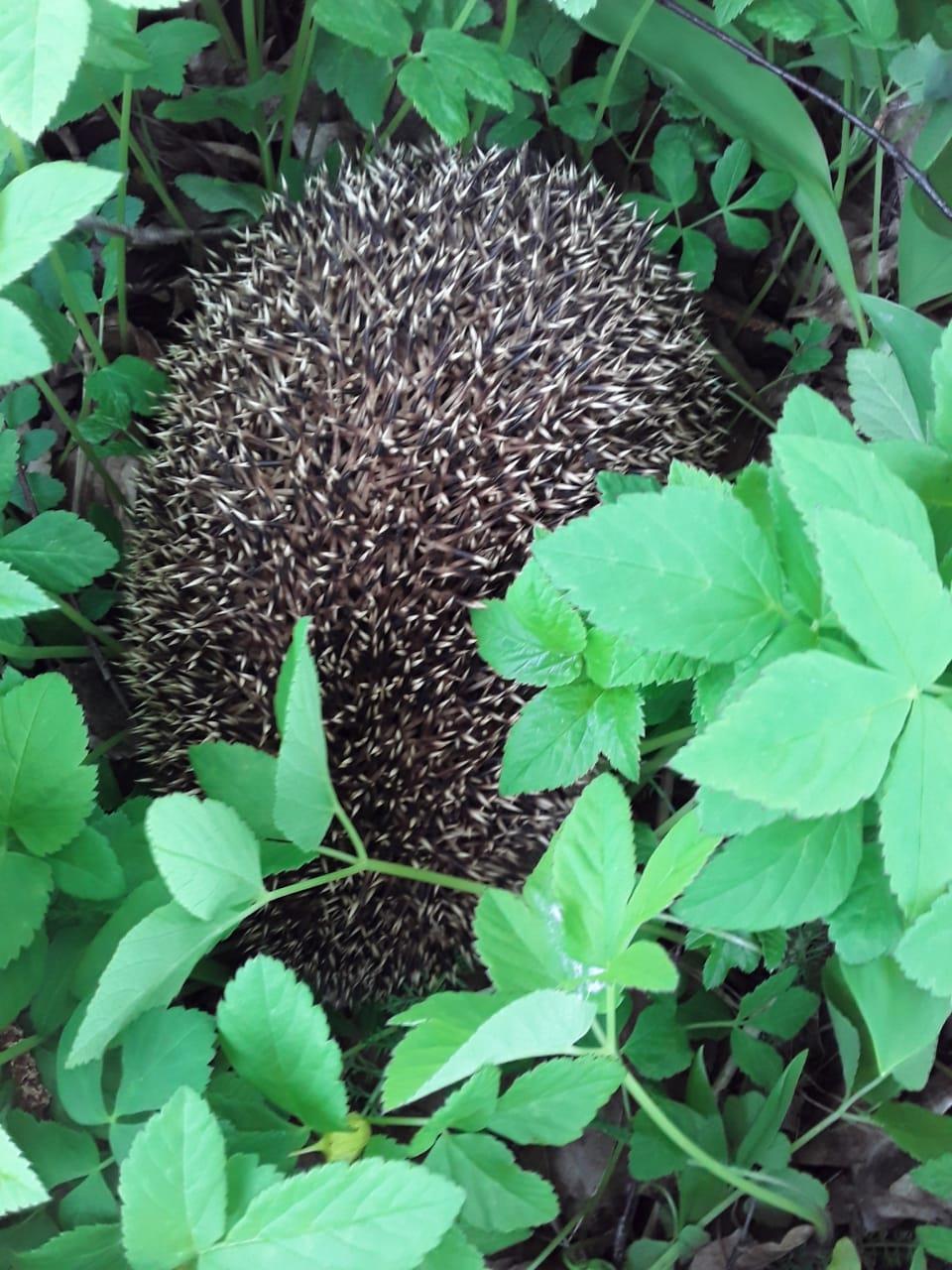 Еж знакомый. Эта толстая попа не первое лето мелькает у меня на глазах. Я нагнулась, потрогала колючего соседа, получила гневное фырканье и пошла себе дальше. Подумала: наверное, и он развернулся и ушел по делам...