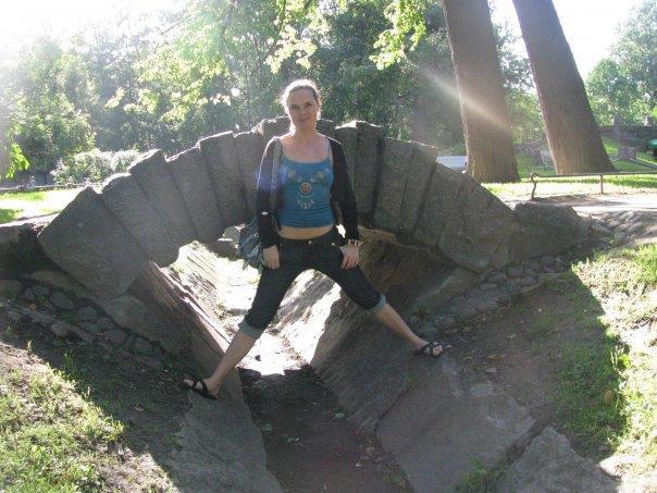 Купила я ее в Казани, году эдак в 2007-м, у какой-то бабульки на Московском рынке, и с тех пор эта майка прочно обосновалась в моем гардеробе. Каждое лето я доставала ее из закромов и носила, можно сказать, не снимая, если не считать тех дней, когда вещь отправлялась в стирку. Синяя маечка переехала вместе со мной почти на три года в Питер (фото, кстати, оттуда), потом на шесть лет в Москву. В столице я уже не надевала ее так часто, но несколько раз летом выгуливала, пока однажды вдруг не обнаружила, что моя любимая вещь стала весьма непрезентабельного вида: бретельки растянулись, половина страз из узора висела на честном слове, и эти противные катышки :(