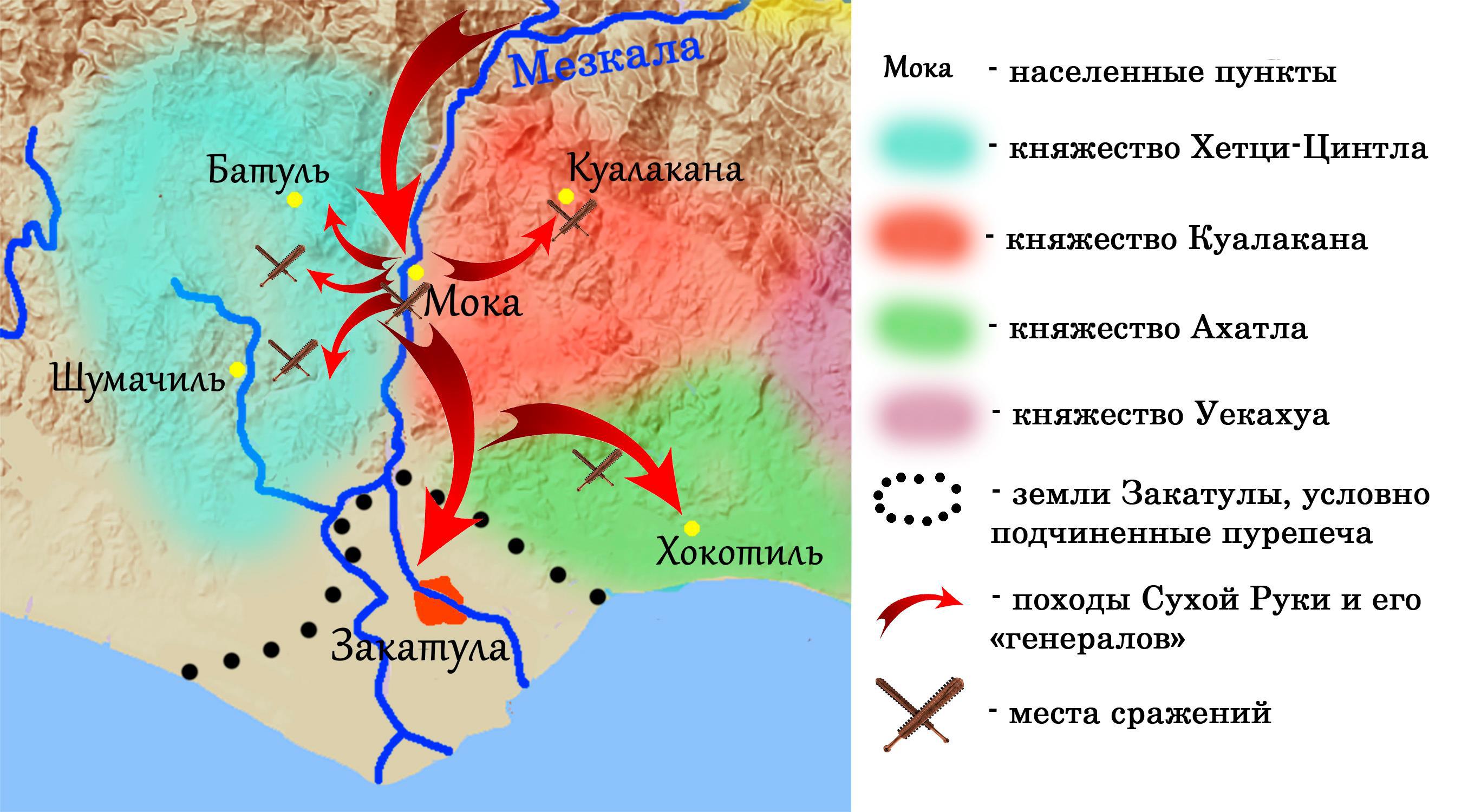 Казалось бы, карта со спойлерами. Вон туда и туда ведут стрелочки. И вообще, написано «первый поход» - значит, будет и второй, а, возможно, и третий. Но не бойтесь! Это не спойлеры. Вы еще даже не догадываетесь, что там скрывается за фотошопными стрелочками, на приморских равнинах древней Мексики.