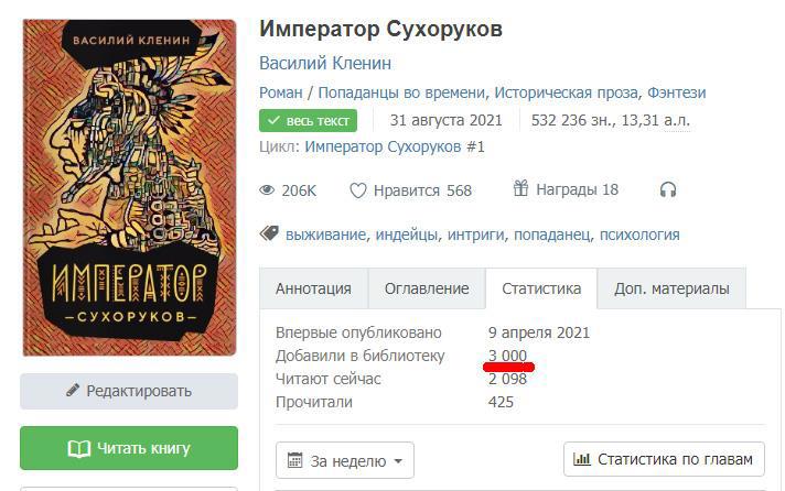 Мой роман «Император Сухоруков»набрал… перевалил за отметку в 3000 библиотек! (картинка вчерашняя)