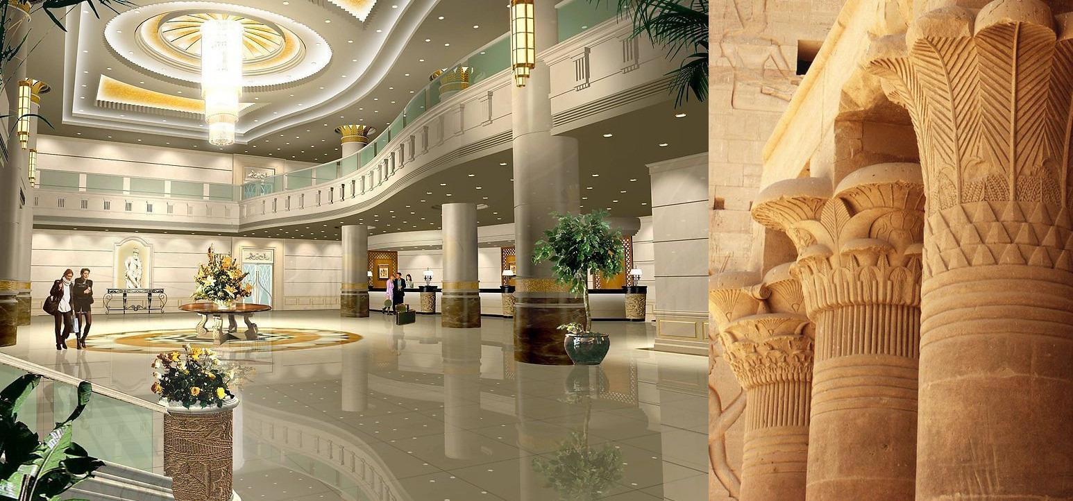 Колонны — опорный столб, обычно круглый или квадратный в сечении. Универсальный элемент, однозначно оставляем (если хочется). Сложно представить, чтобы кто-то до них не додумался. Единственное: убрать самый узнаваемый античный тип колонны — с желобками (каннелюрами) и капителями. Изменить форму: более тонкие или, наоборот, широкие колонны смотрятся уже совсем по-другому. Виды капителей также очень разнообразны. Хорошо смотрятся толстые египетские колонны с лотосовидными капителями, они гармонично и незаметно встраиваются в современный стиль.