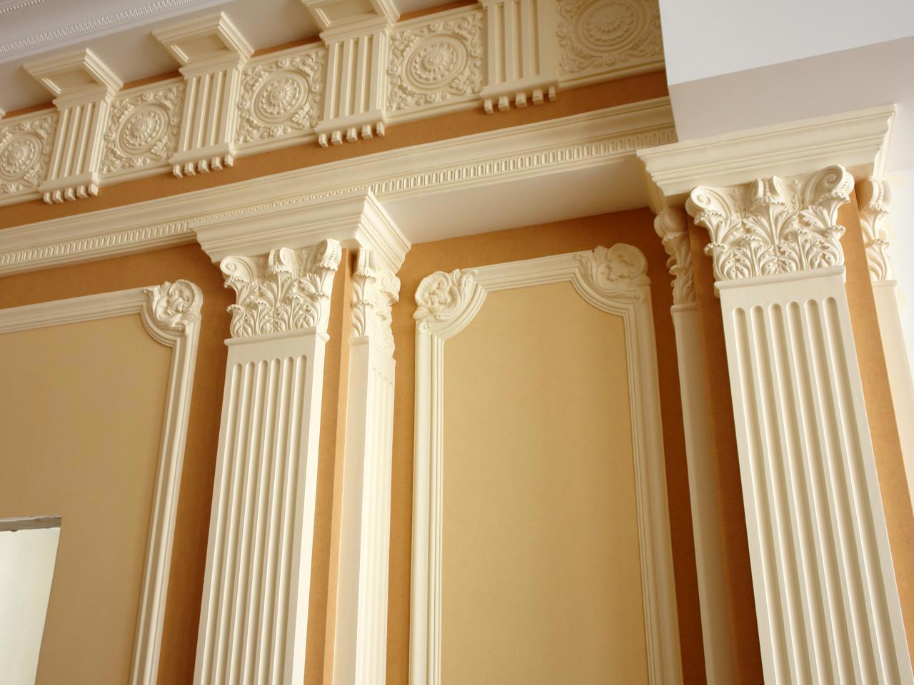 Пилястра — внешняя имитация античной колонны, выступ на поверхности стены. Пилястры необходимо убрать. Поскольку их функция сугубо декоративная, их можно заменить на что угодно: рисунок, мозаику, резьбу, фигурную кладку. Некоторые стили вообще не требуют внешнего декора и спокойно относятся к ровному пустому пространству.
