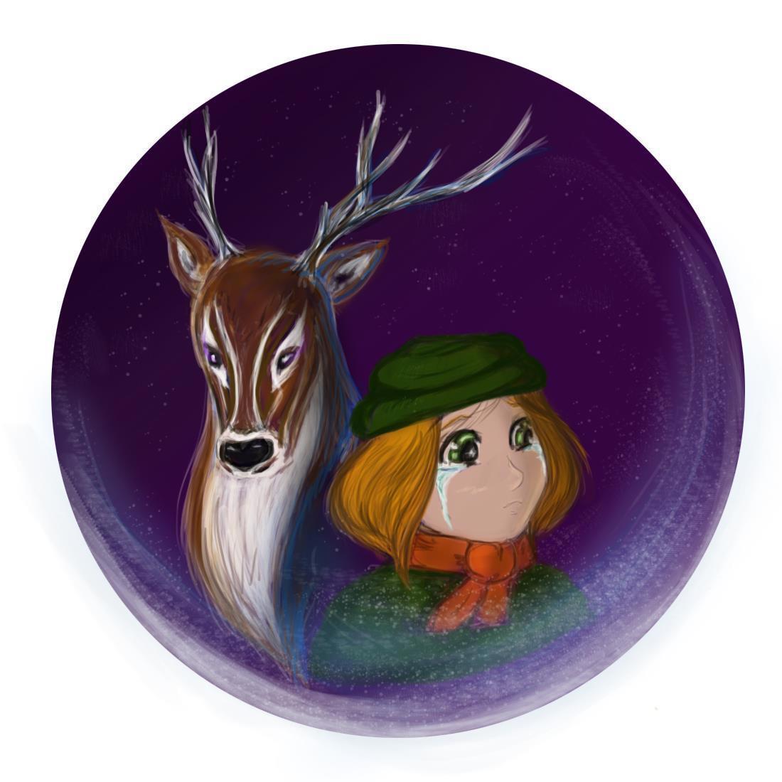 Полярная ночь, снега, одинокая грустная девочка и волшебное существо - живая страна Кайрис в облике древнего оленя. Конкурсная иллюстрация принадлежит Килиан Монд, сердечки сюда.