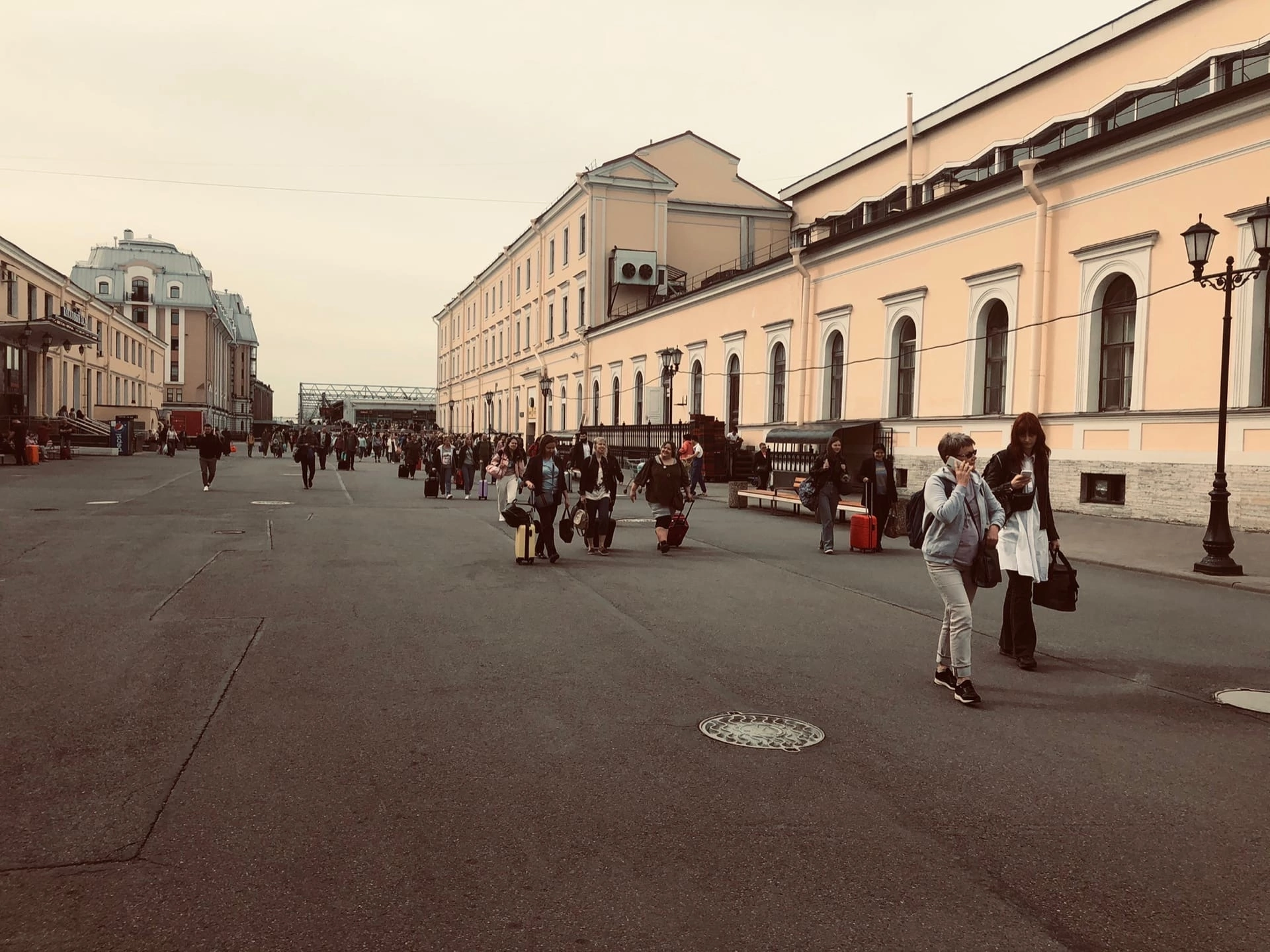 Московский вокзал без сутолоки и негатива. Пассажиры разошлись и мы спокойно пересекли площадь.