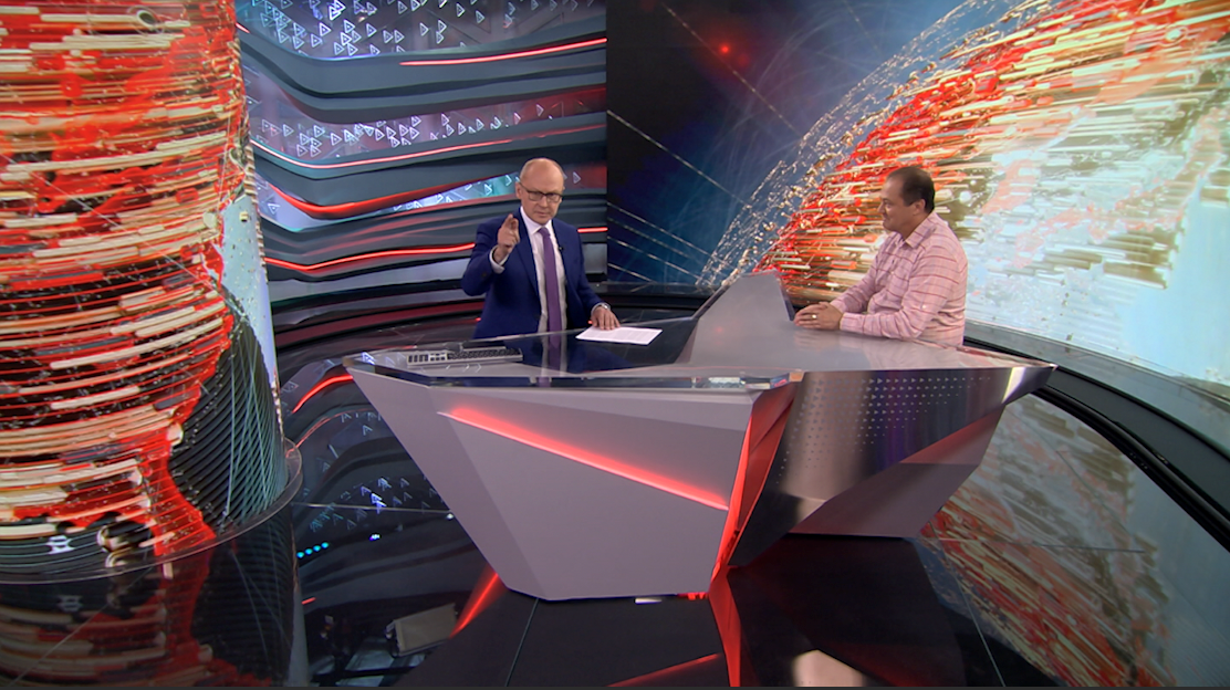 Сегодня после записи интервью с гостем программы «25-й час» ведущий Алексей Фролов попрощался на камеру, а гость-эксперт засобирался восвояси. Фролов ему: «Подождите, дайте вас расчеловечат!»