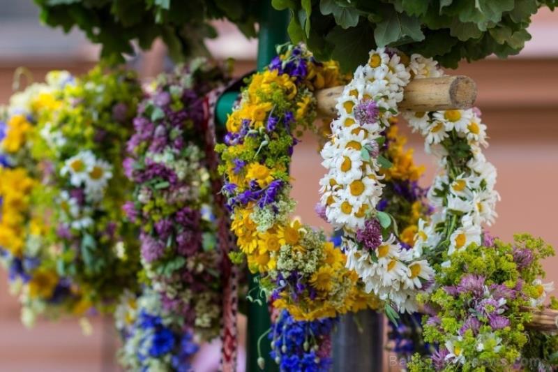3. Есть на Лиго и традиция собирать травы. Целебную и магическую силу имеют травы, собранные в канун Яновой ночи. Цветочные букеты, как обереги, украшали и охраняли двор, двери, да и сам дом. А венок из цветов и трав так красиво украшает любое лицо.