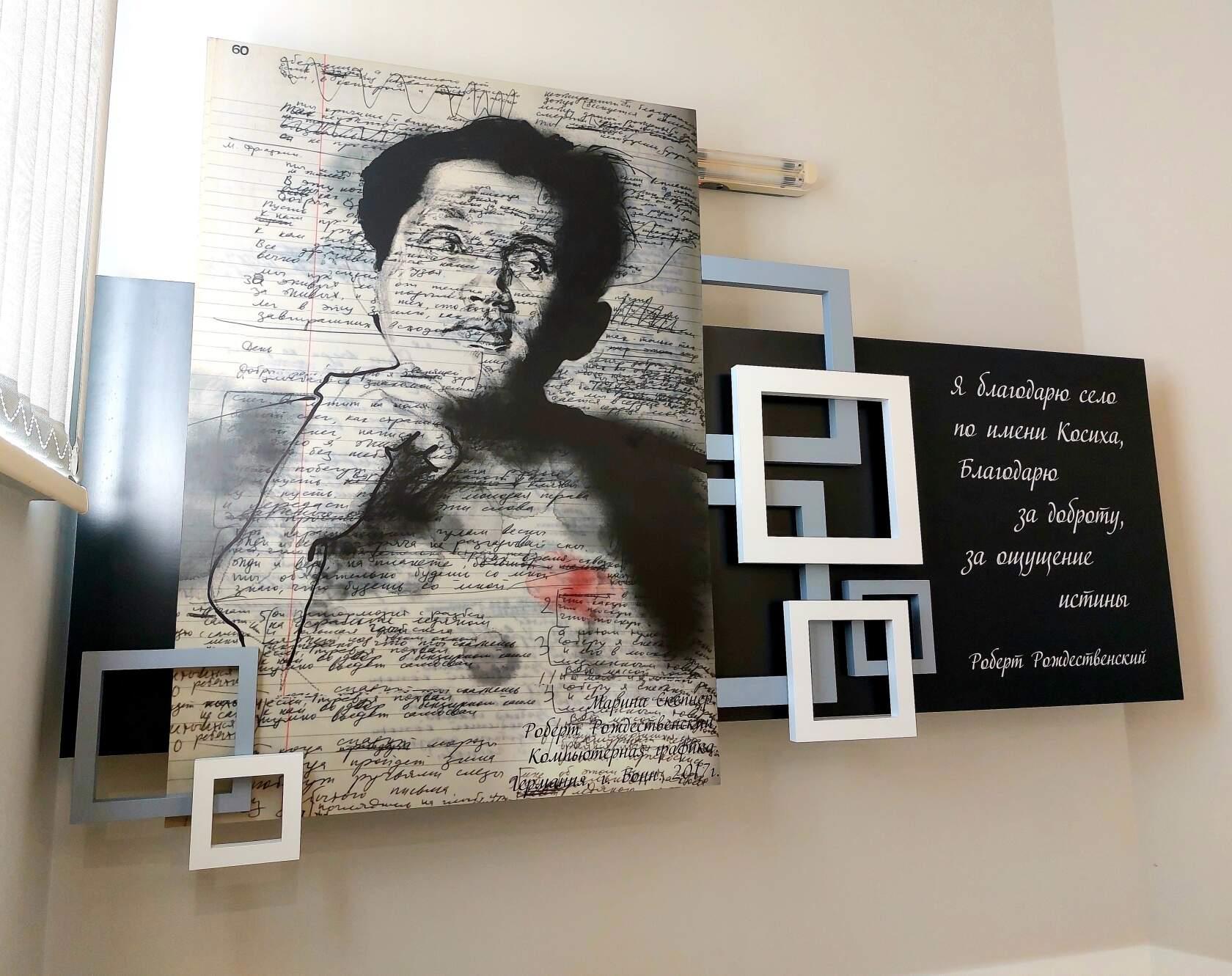 Замечательный барнаульский дизайнер, мастер каллиграфии Ольга Алексеенко по заказу музея создала 30 работ, в основе которых лежат стихи Роберта Рождественского».