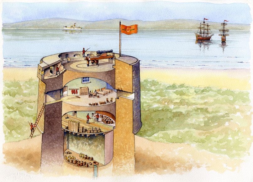 Той самой, над которой никогда не заходит солнце. Итак, давайте скажем пару слов о британских башнях Мартелло.