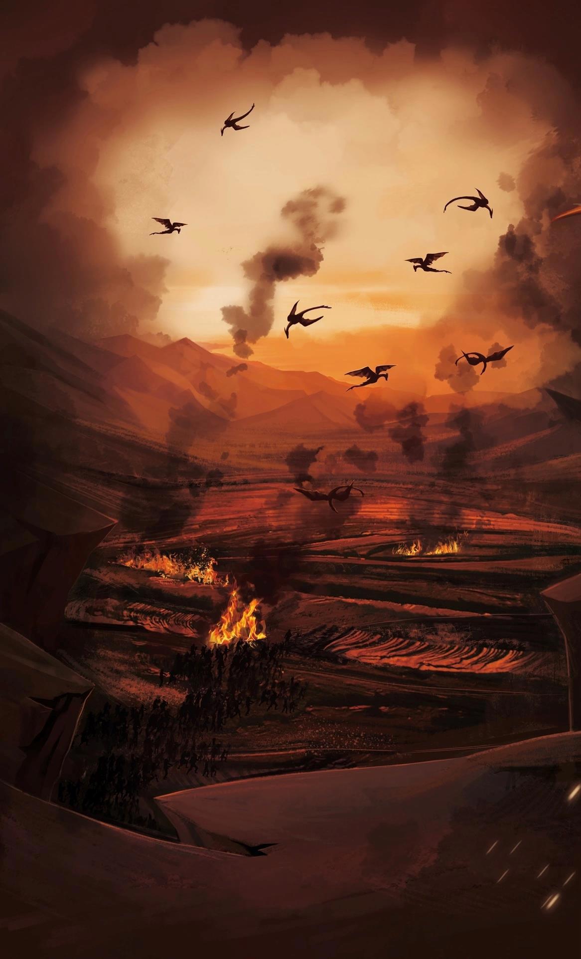 Черная долина, да. Горящие угольные карьеры. Всю батальную сцену я у художника вымогать не стала, ну я же не зверь, - однако обозначить просила, и мне таки обозначили.