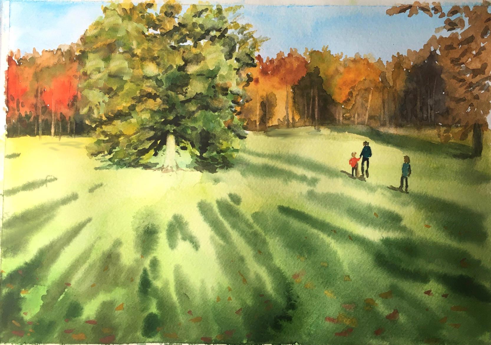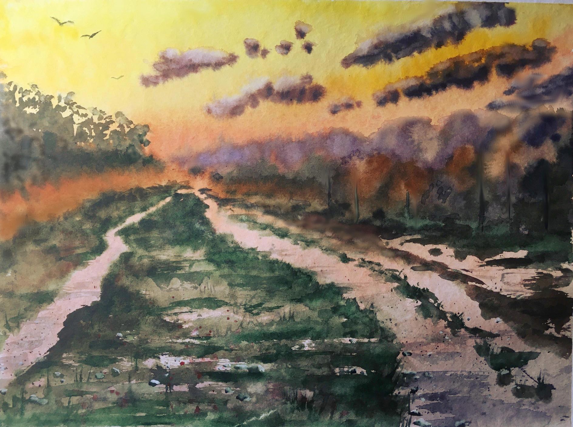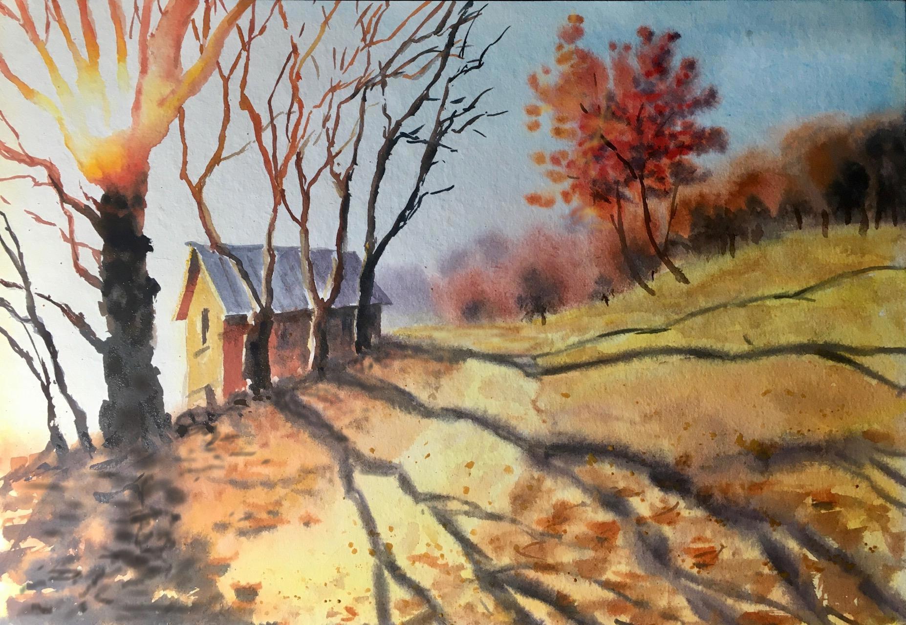 Под конец поняла, что удалось освоить перетекание цветов акварели на дальнем плане,  выбор этих самых цветов, принципы света и тени вблизи и вдали, свето-воздушную перспективу, ну и, конечно, просто перспективу как работу с пространством в пейзаже. Это. Был. Кайф.