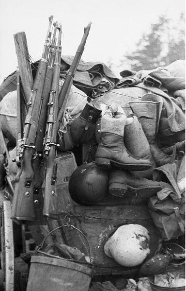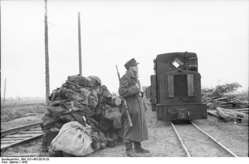 По узкоколейке доставили амуницию и обмундирование. Пост на полевом вокзале.