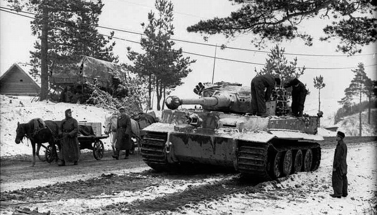 Героичсеские танкисты ремонтируют свой Тигр, так и эти на лошадках в кадр влезли.