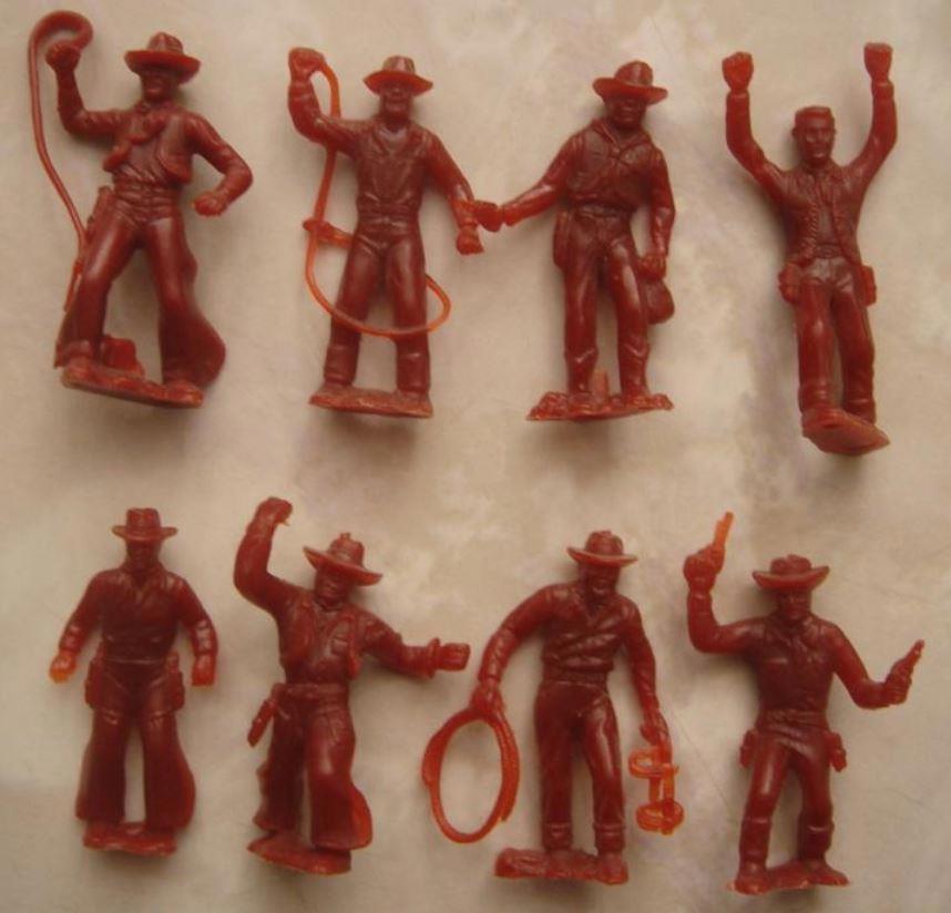 Было семь наборов «маленьких» солдатиков высотой 60 мм: Ковбои (они же знаменитые "ковбойцы" или "камбойцы"), Индейцы, Пираты, Викинги, Римские легионеры, Египтяне и Рыцари. В каждом наборе по 8 фигурок.