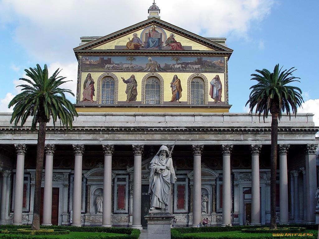 Базилика Сан Паоло Фуори Ле Мура, построенная во времена императоров Константина и Феодосия на месте погребения Апостола, долгое время являлась самым вместительным храмом в мире, опережая в этом плане собор Святого Петра. Веками церковь не претерпевала значительных реконструкций пока пожар, произошедший в ее стенах 15 июля 1823 года, не уничтожил ее почти полностью. Технологии 19-го века позволили сравнительно быстро и достоверно восстановить базилику, которая в наши дни привлекает туристов и паломников более всего благодаря двум факторам — недавней идентификацией останков апостола Павла и галереей с портретами всех римских пап, где незанятыми остались всего лишь 10 мест. Согласно легенде, Конец Света случится в годы, когда последняя ниша с медальоном папы будет занята. Для тех, кто думает, что на его век времени хватит, можно заметить, что на рубеже 9-10 веков для смены 10 пап потребовалось всего-то 8 лет …. на https://author.today/work/149923/ опубликована сорок первая глава романа «Его высочество Буриданов осел», шестой книги исторической серии «Kyrie Eleison».