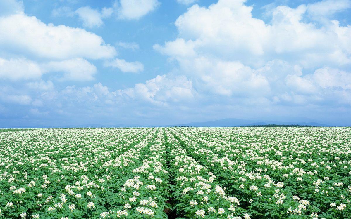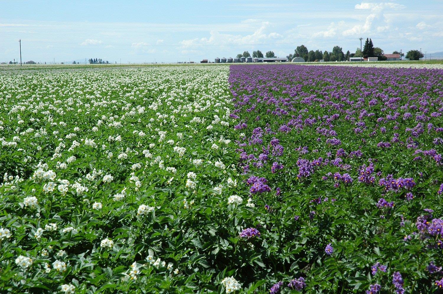 Картофель. Поля картофеля особенно симпатичны во время цветения. И запах стоит приятный.