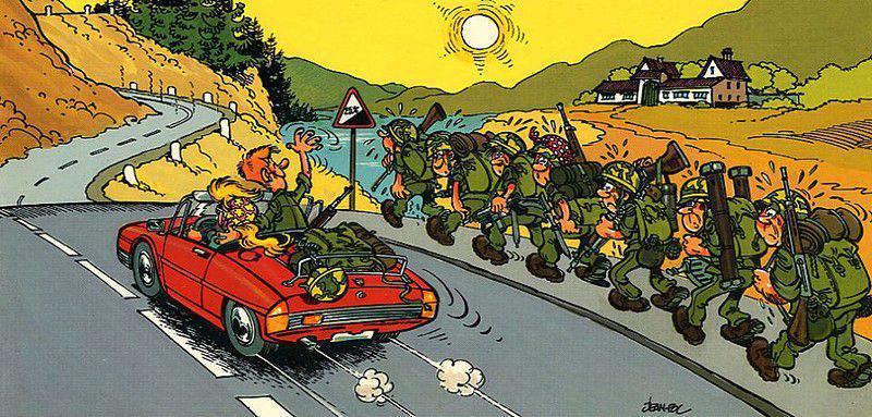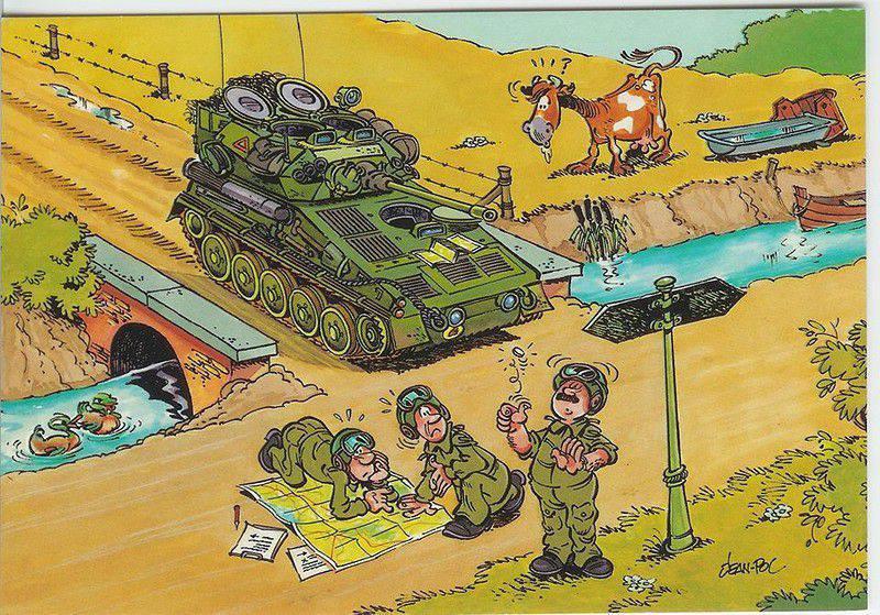 Уточняя про бельгийскую армию, раз уж про них, бельгийцев, речь зашла в "Мы из Кронштадта" вспомнил про карикатуриста Жана-Поля Ван Ден Броека, много рисунков посвятившего именно армии и именно бельгийской. Хотя должен заметить в основном подмеченные им ситуации характерны вообще для армейской службы.
