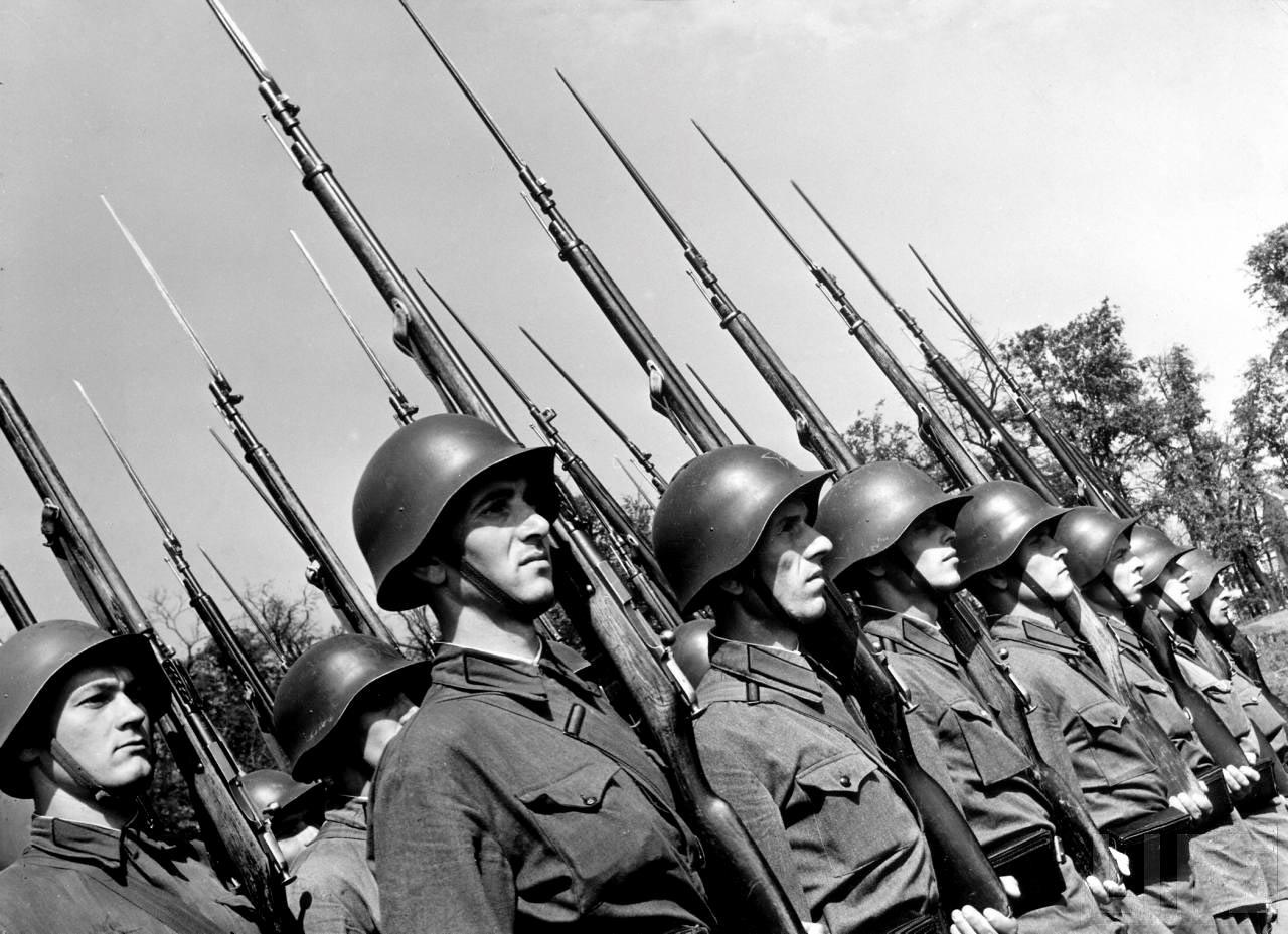 Подразделение, вооруженное винтовками Мосина. По орлам на пилотках - вроде Люфтваффе?