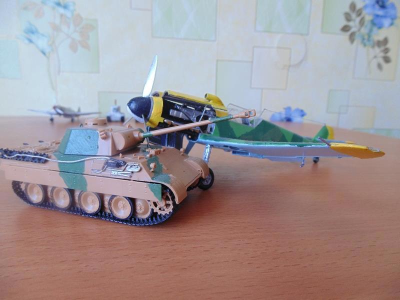 Пришлось смывать и красить, почти в классику - сине-зеленый "Апач" и коричнево-зеленый "Абрамс"...