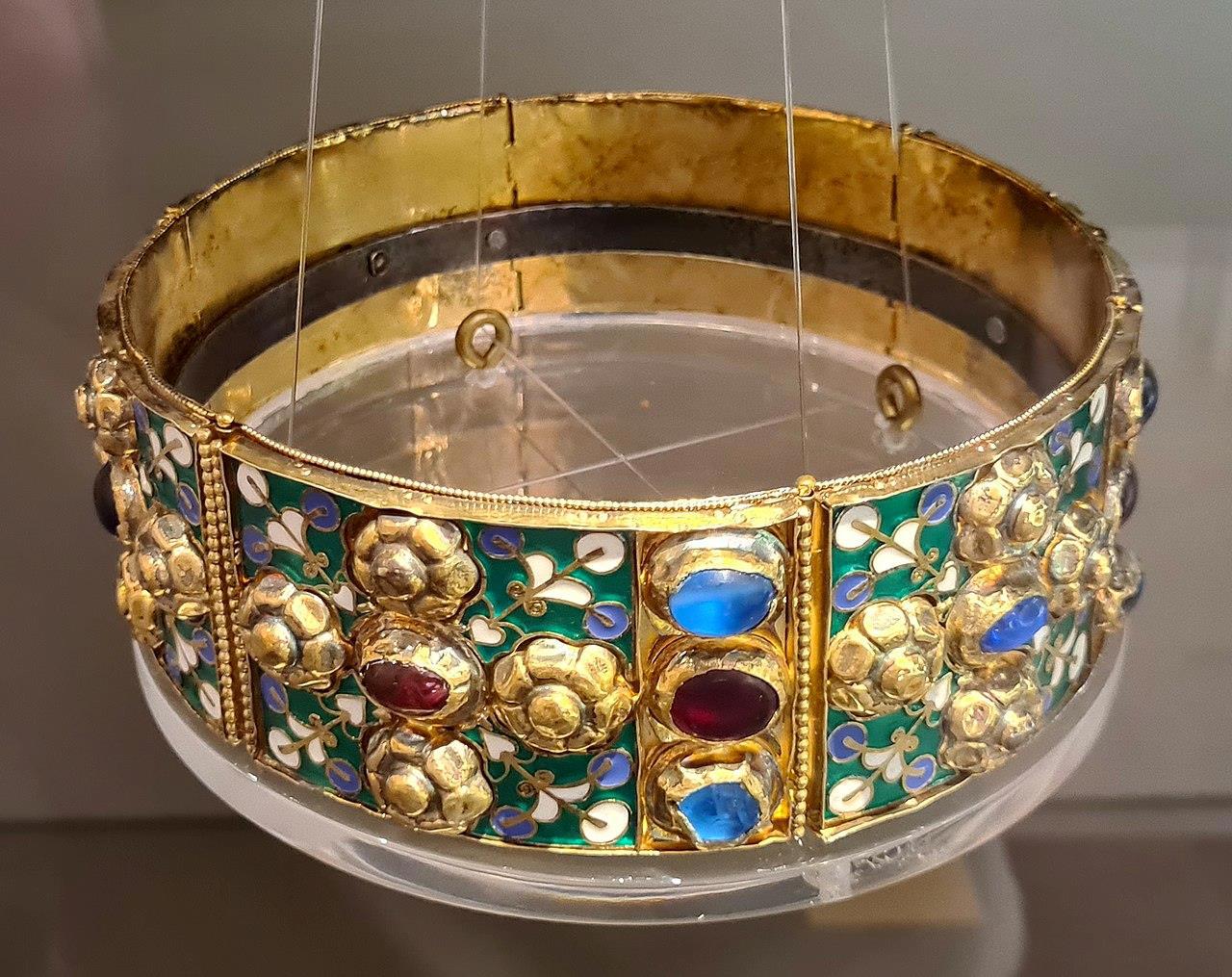 Автор: ГлиссуарОдна из моих любимейших корон — это Железная корона лангобардов. Которая не железная (а золотая с серебряным обручем внутри), не факт, что лангобардская (может и позднеримская/ранневизантийская, хотя для тех ребят грубовато как-то), да и вообще не корона. В смысле, скорее всего не надевалась на голову, а торжественно подвешивалась в церкви. К сожалению, почти все ее фото из музея плохие, и толком рассмотреть эту раннесредневековую красоту было сложно. Например, я читала, что там есть синяя эмаль, но ее было не видно. А вот сделали реплику, ее нормально сфоткали и там все видно.