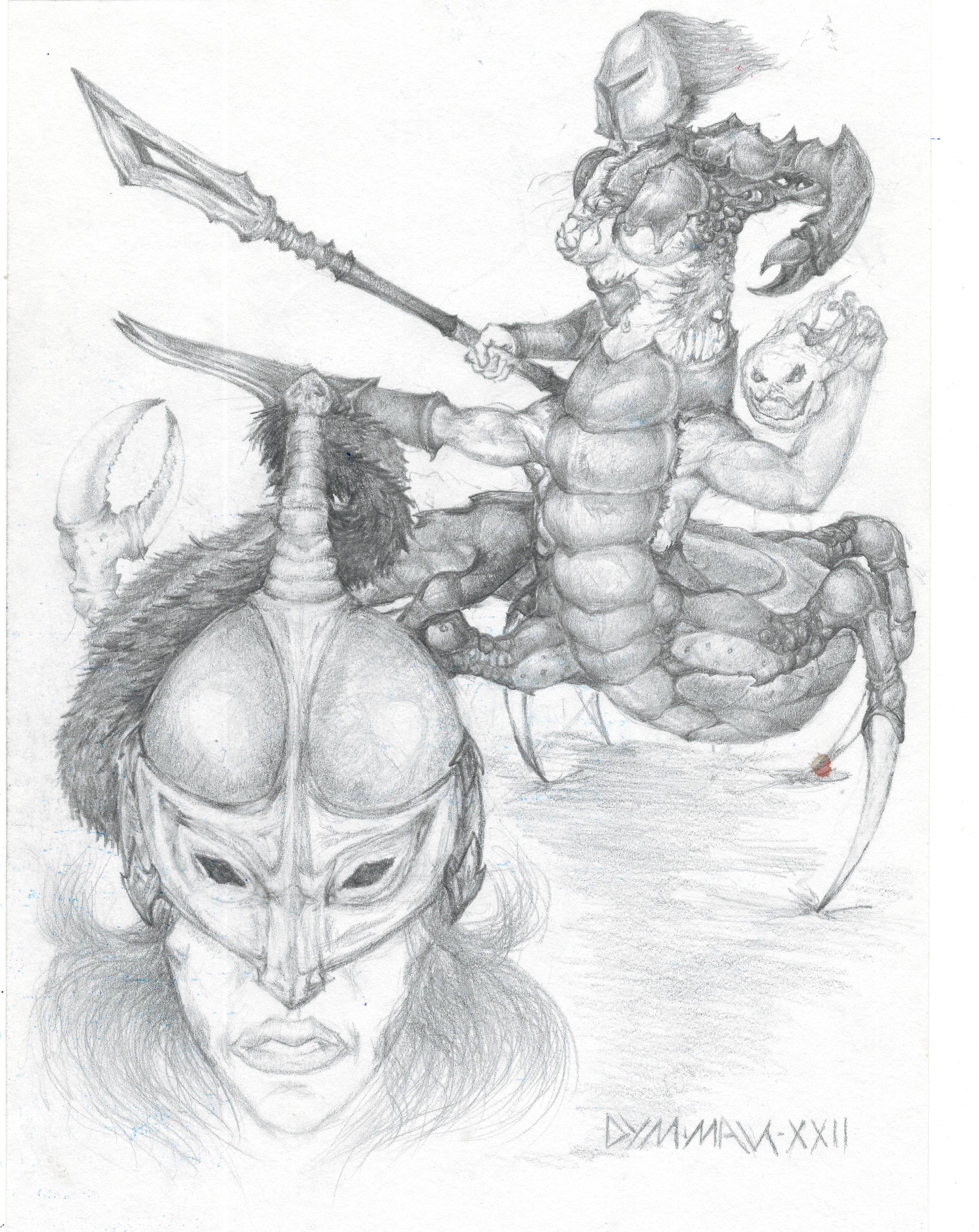 Алхимики же, у Границы живущие, кои останки скорпей видели, говорят – бо скорпеи есть дело рук отступников из братства их, кои могут воедино сращивать тела человечьи да звериные. И, думается многим, что правы оне в таких мыслях, ведь кроме шести-восьми лап острых, дабы по потолку бегать, да плоть рвать, да обыкновенных рук человеческих пары, имеют скорпеи и вторую пару рук, такое же под силу или Тьме или колдунам дивным, на науку опирающимся.