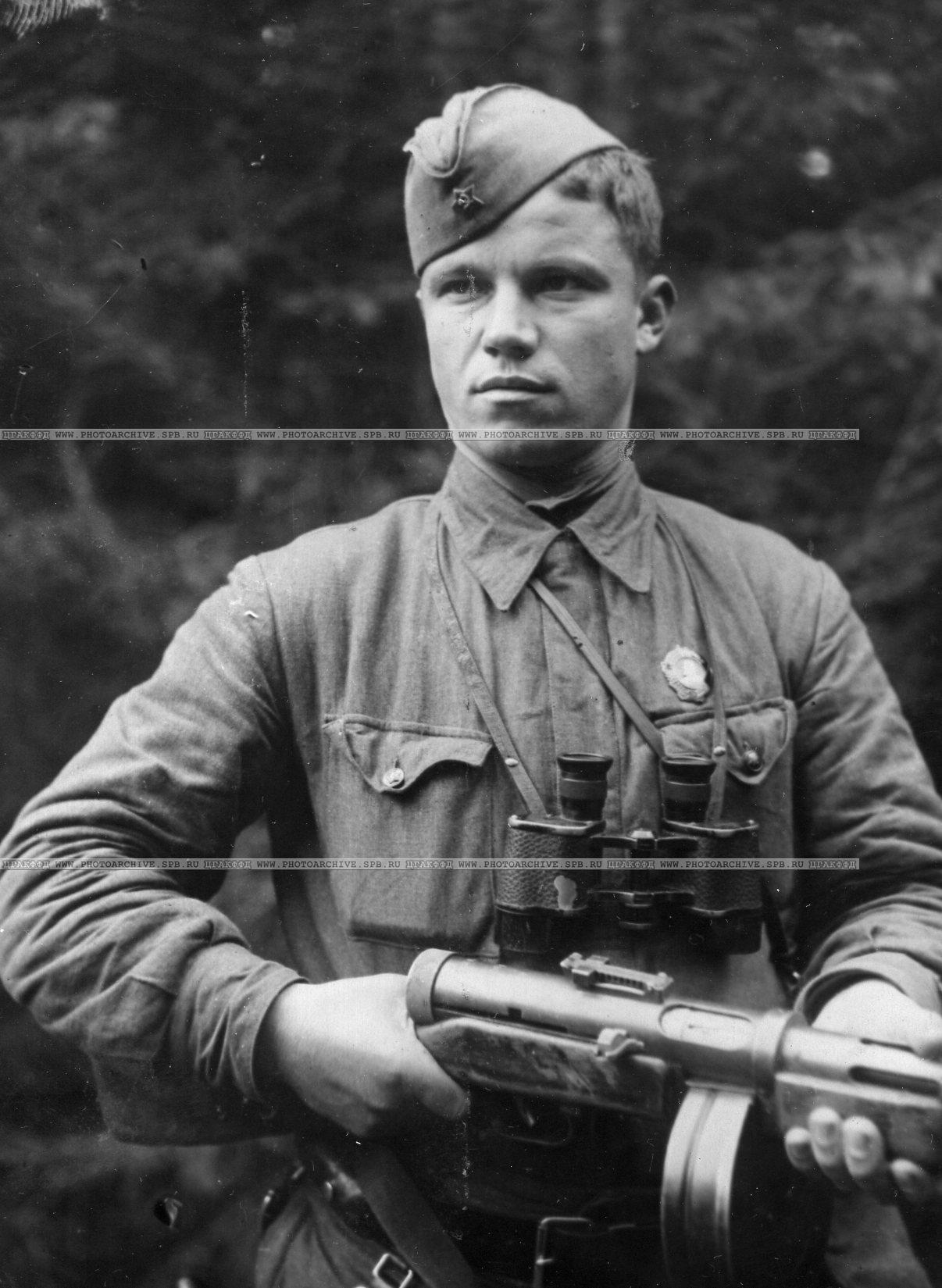 Боец с ППД. (Командир 1-го батальона 5-ой Отдельной бригады морской пехоты КБФ, старший лейтенант Боковня Степан Иосифович.)