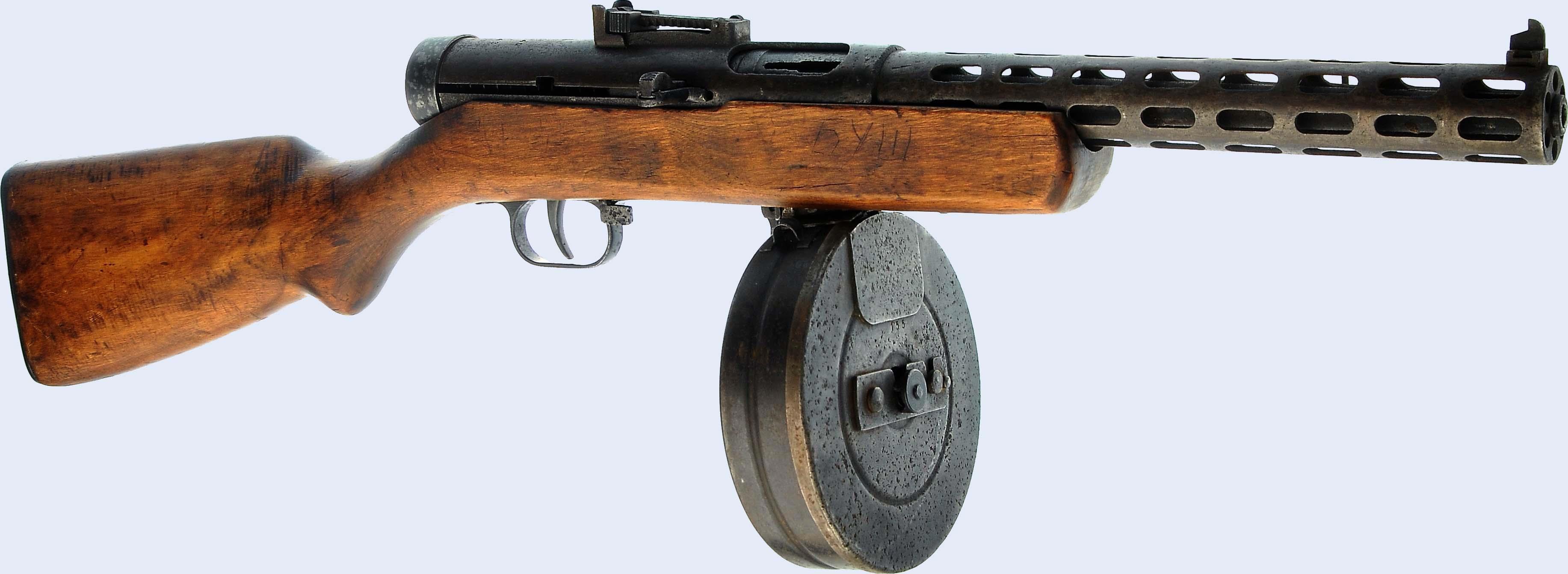 ППД - пистолет пулемет Дегтярева. Достаточно сложная машинка, хотя и попроще Суоми, который малограмотные все время пытаются выдать за слизанный образец. На близких дистанциях - адская машинка.