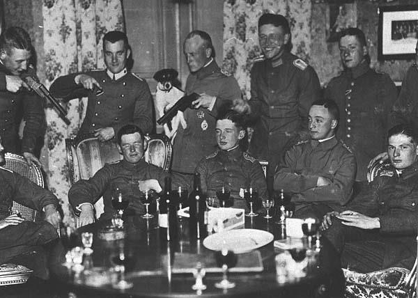 Вечеринка летчиков эскадрильи Jasta 40 в офицерском клубе (сидит второй справа лейтенант Вилли Розенштейн)