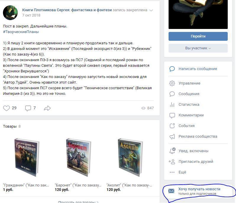 Автор: Плотников СергейОсвоил новую фичу - оповещение о новой главе через Личные сообщения Вконтакте