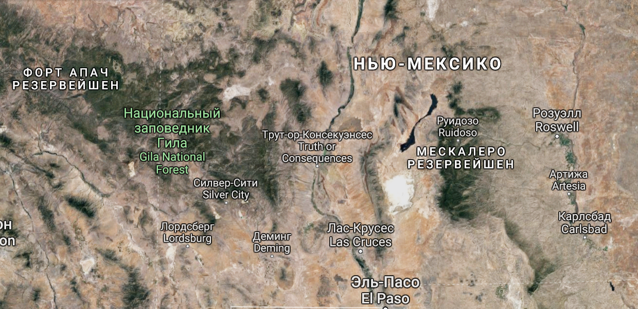 От Розуэлл до Невады (Зона 51) приблизительно 1800 км.