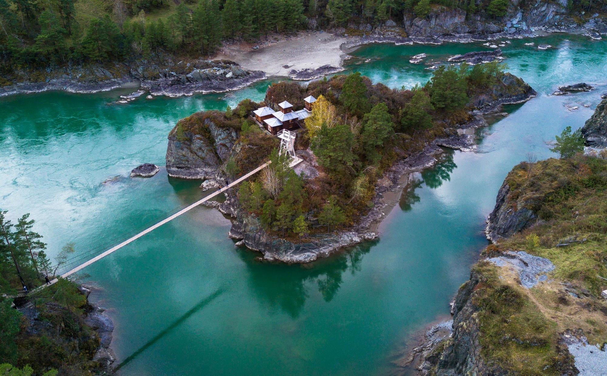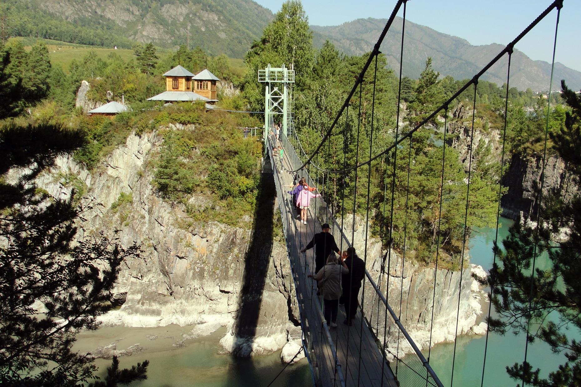 Остров Патмос на реке Катунь — это одна из чудесных достопримечательностей Республики Алтай. Единственный путь на остров проходит через подвесной мост. Идти по нему временами страшновато, особенно когда на него заходит слишком много людей, он начинает весьма ощутимо раскачиваться.