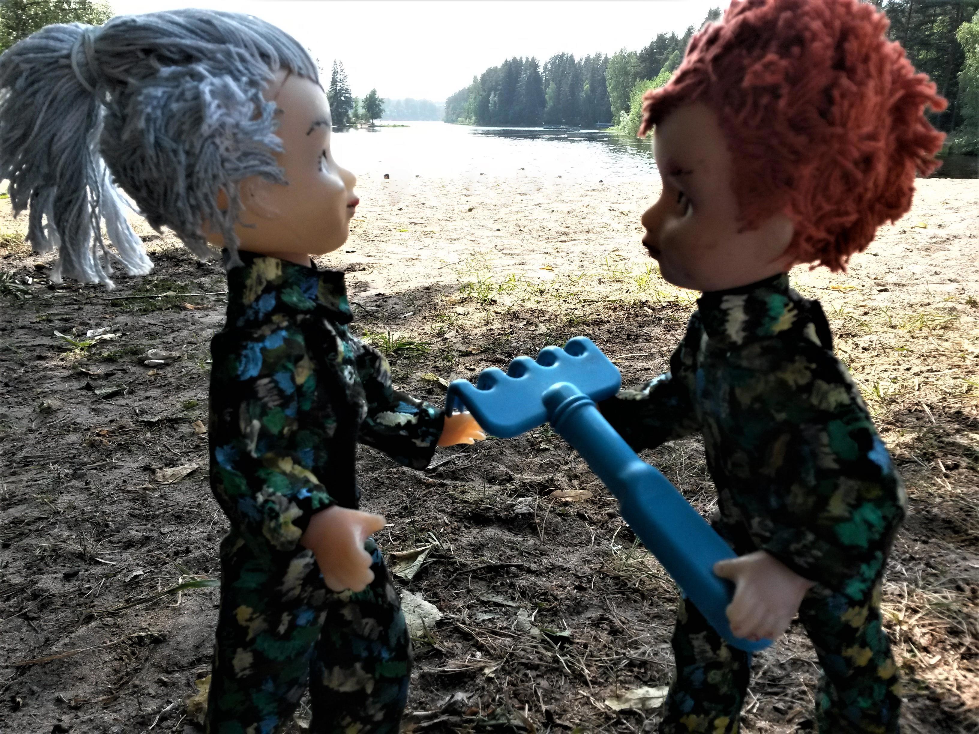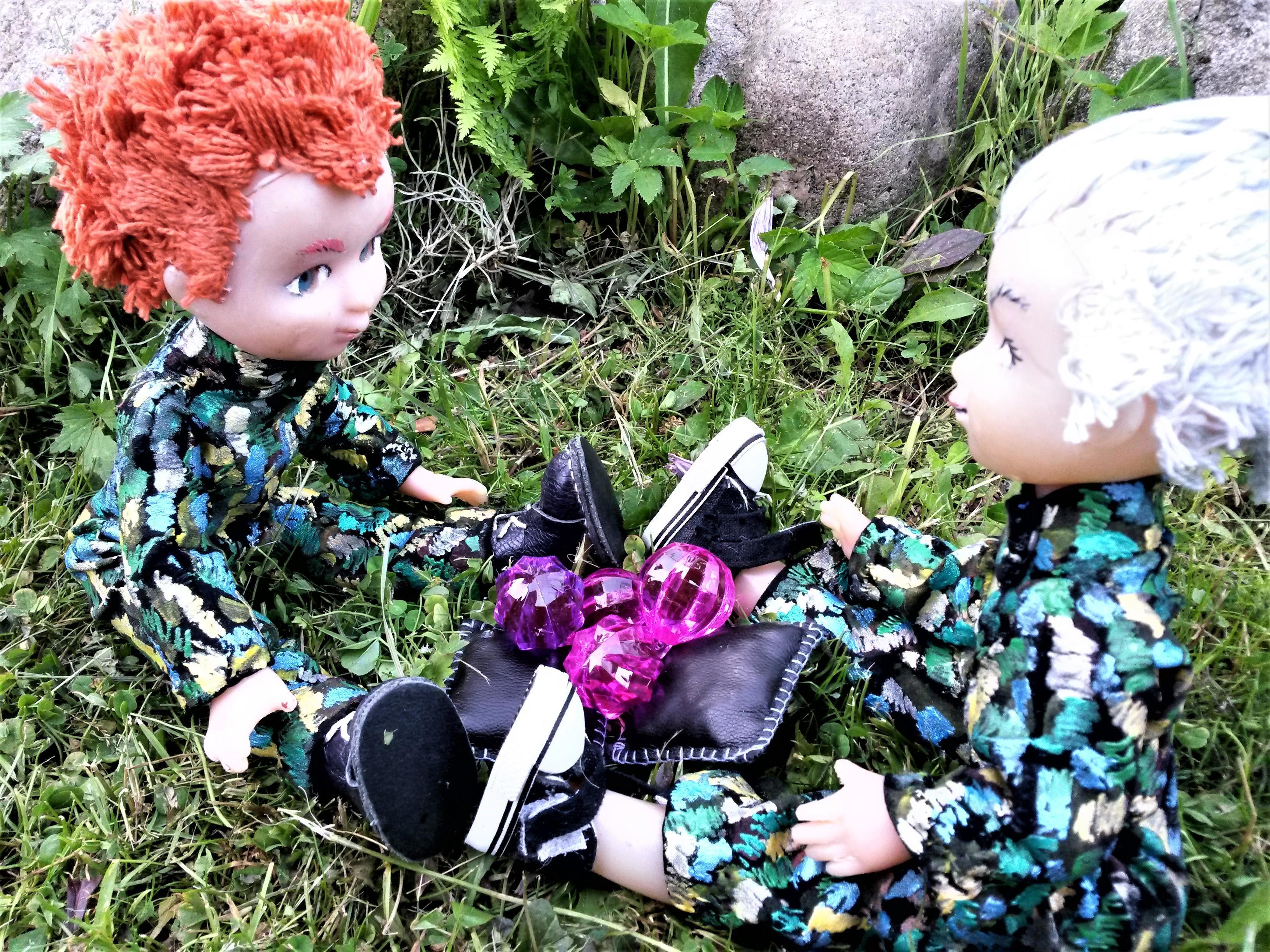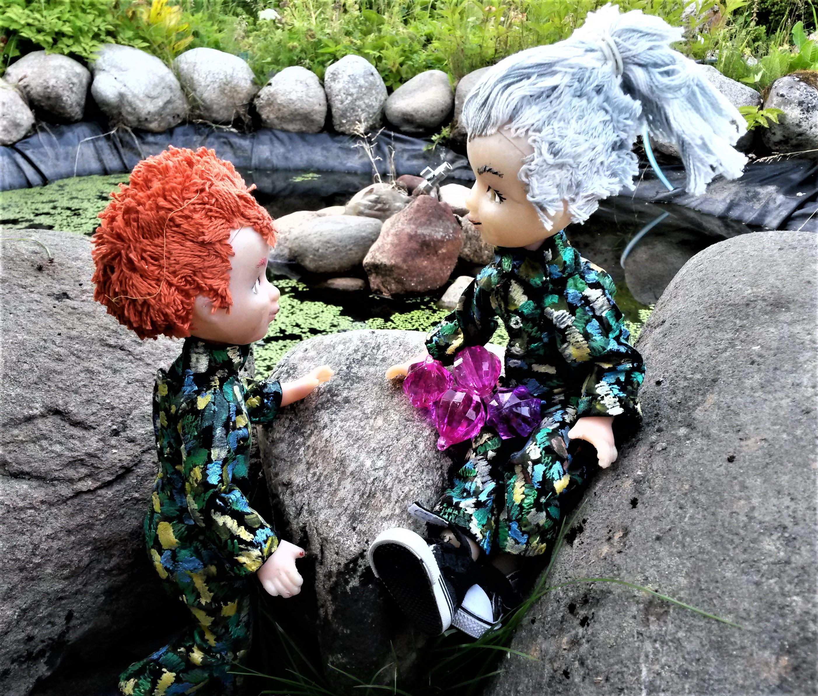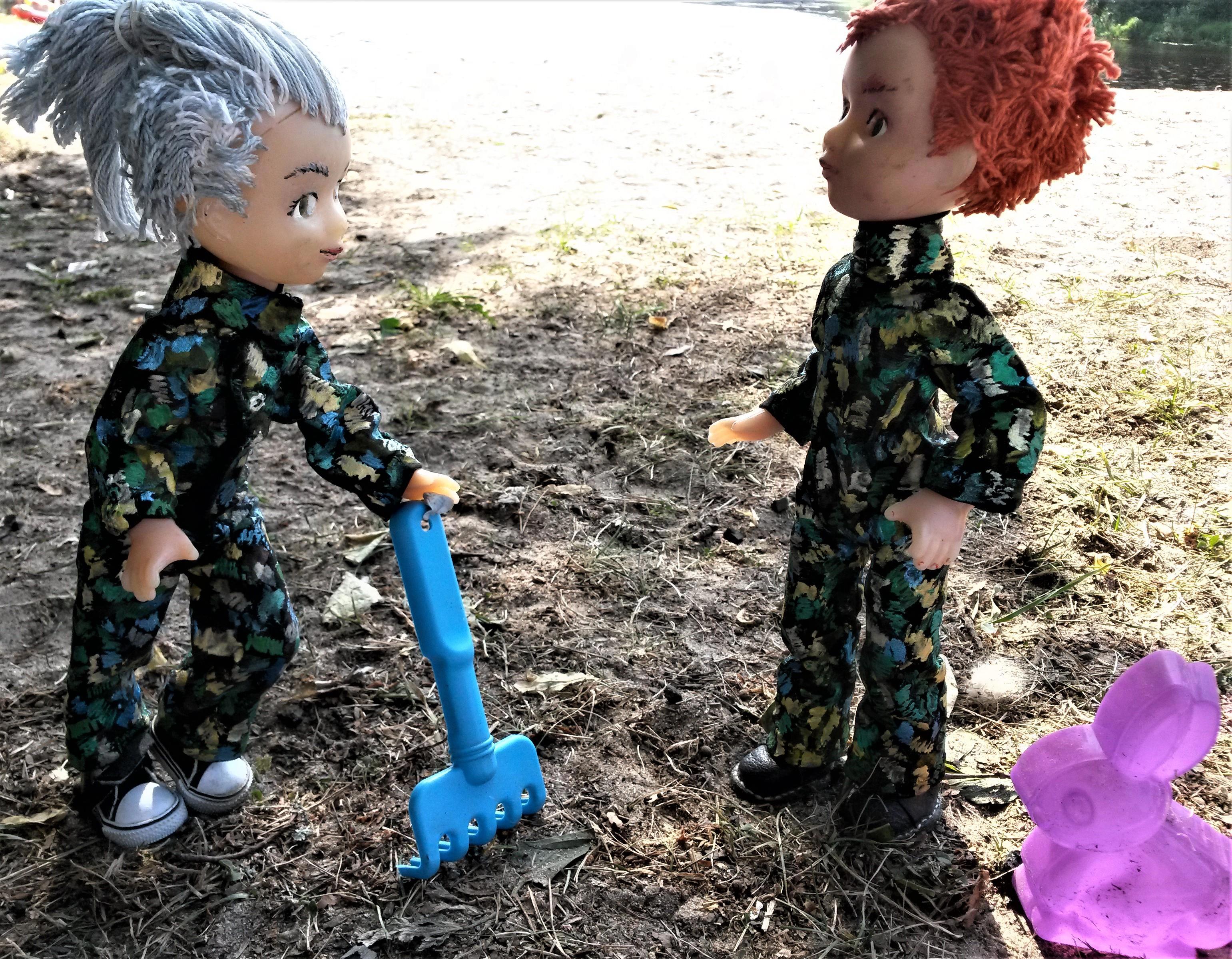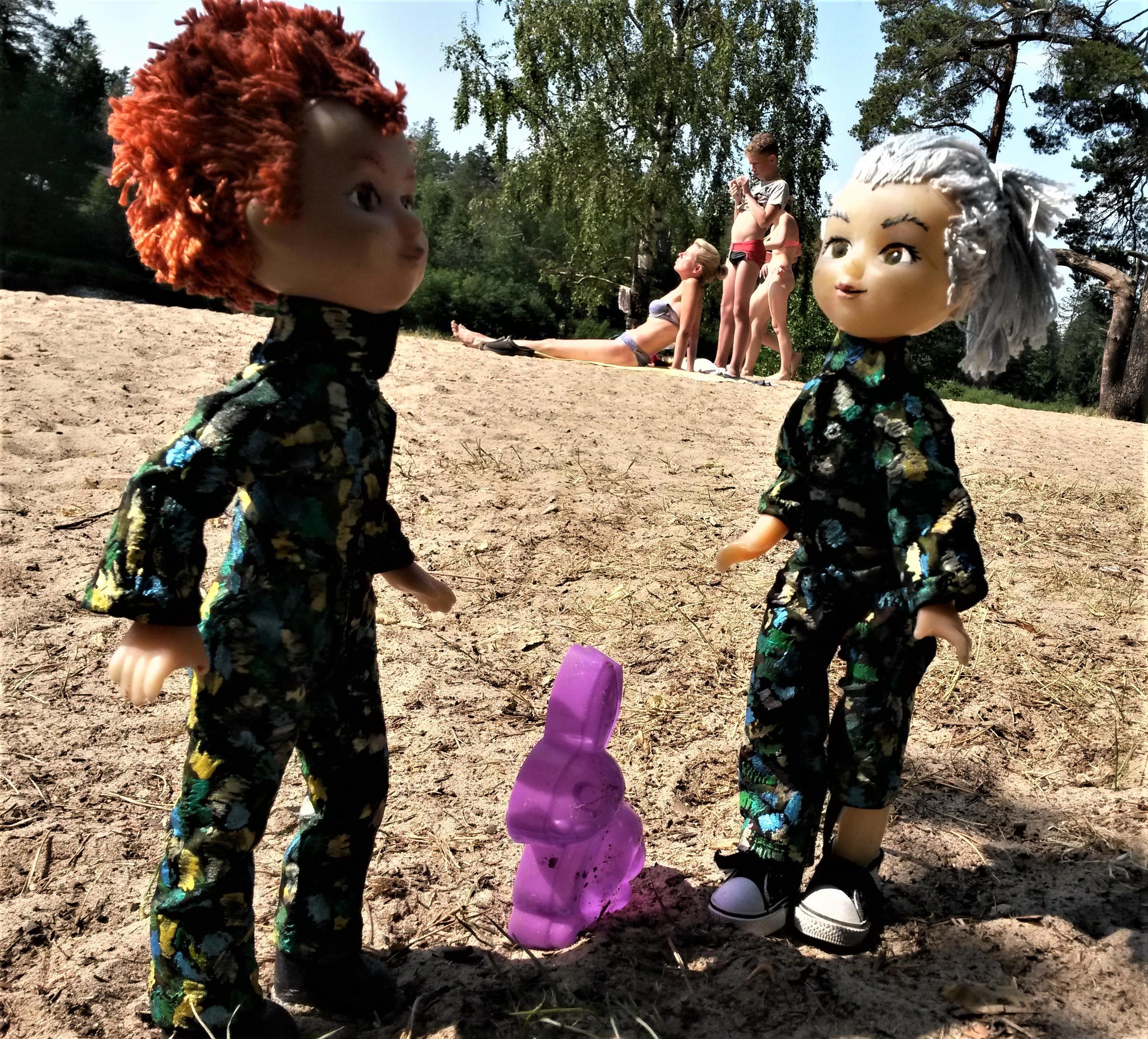 — А почему он фиолетовый? Должен же зеленым быть! И с перьями!