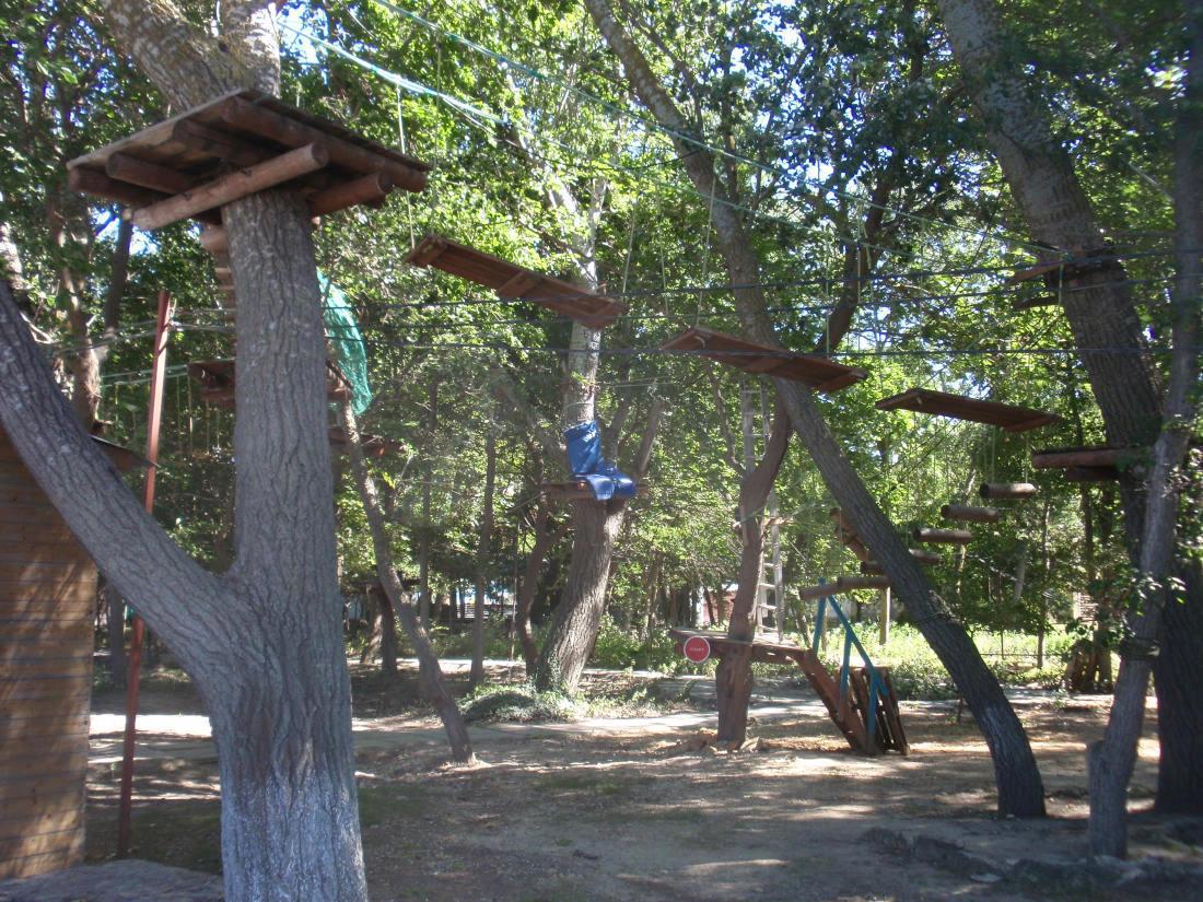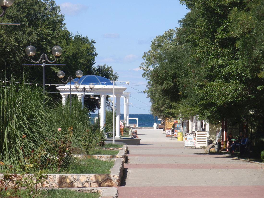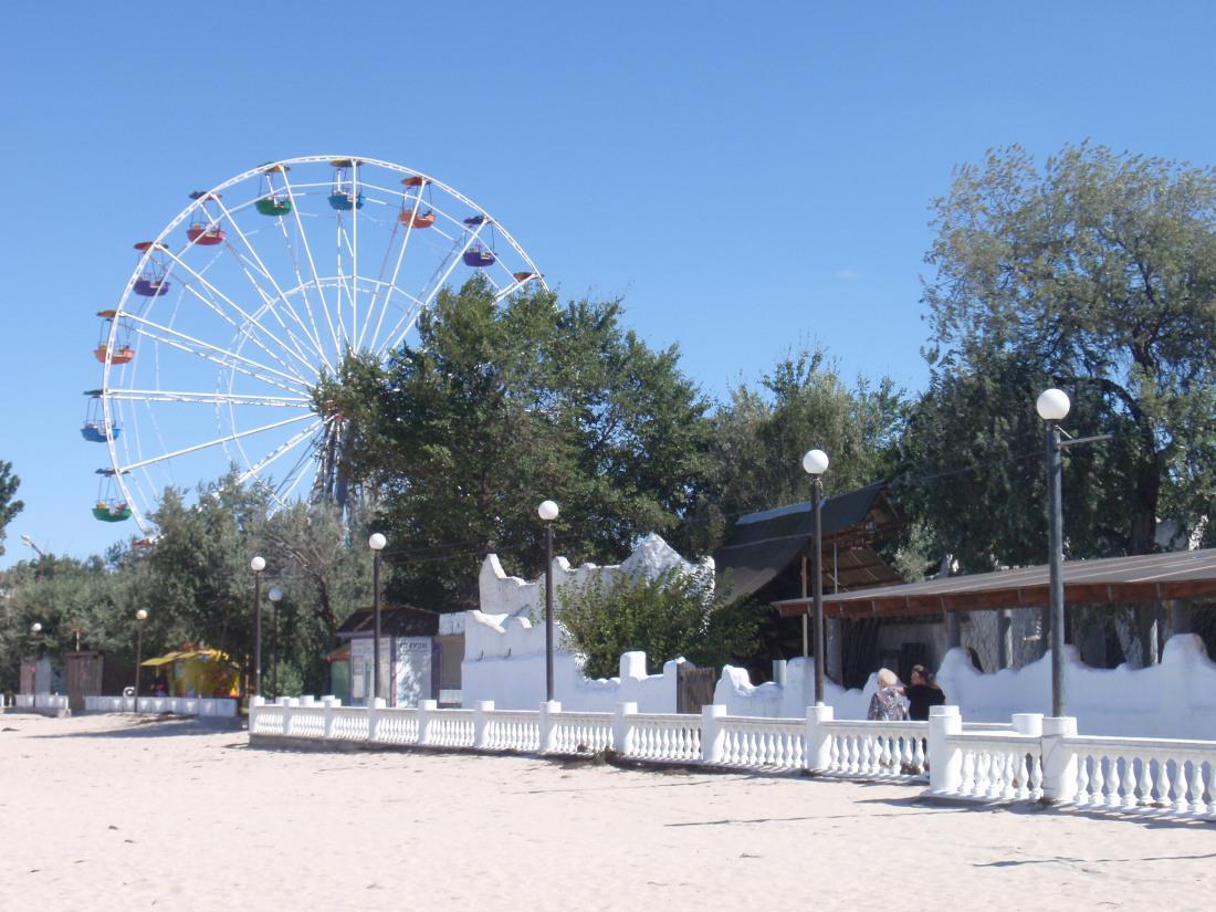 Если идти по берегу, можно выйти на пляж, переходящий в набережную с непременными курортными атрибутами, а также бонусами в виде карусели, детских аттракционов и небольшого канатного парка.
