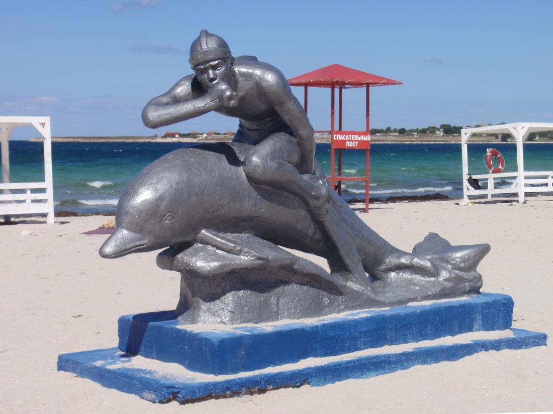 "Морские Черноморские" – не тавтология. Этот симпатичный персонаж является одним из символов не менее симпатичного пгт Черноморское на западе Крыма, на том самом Тарханкутском полуострове, про который я немного писала.