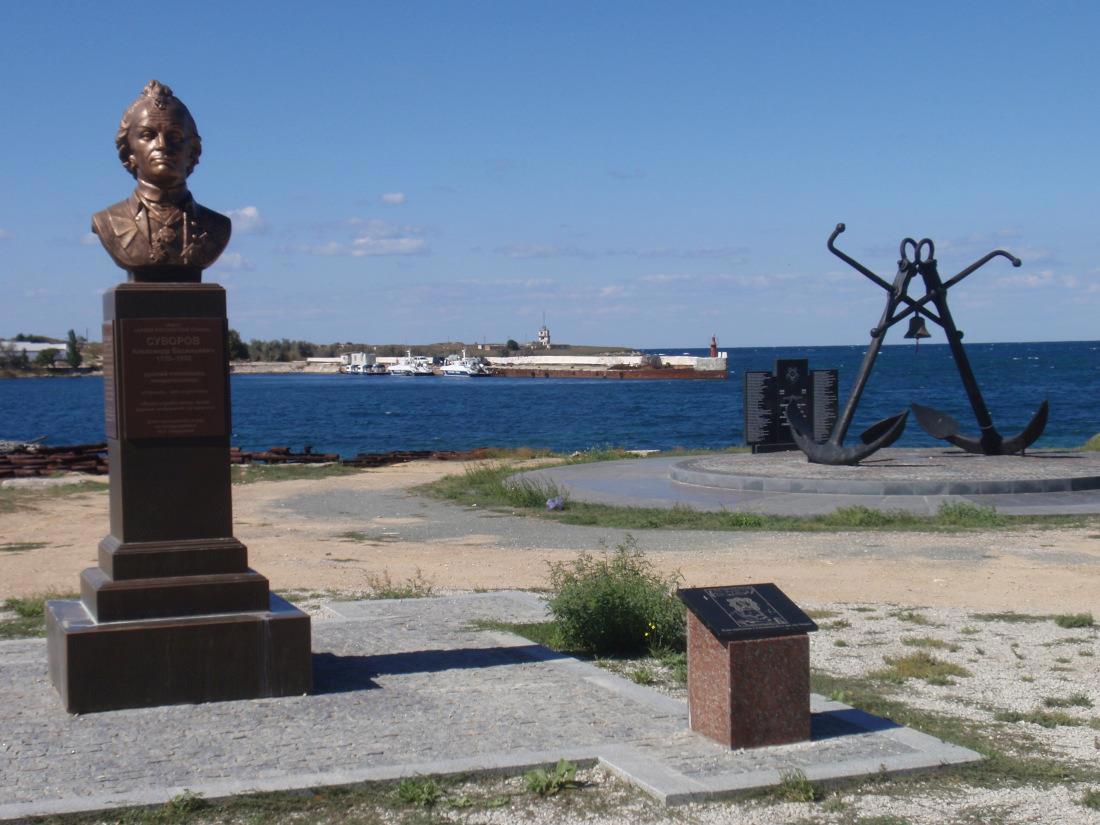 В районе старой пристани, нечувствительно переходящей в пляж и набережную, также есть, что посмотреть. Например, памятники Фёдору Ушакову и Александру Суворову. За памятником Суворову находятся остатки т.н. Суворовского редута, одного из укреплений периода Русско-турецкой войны. Пушка, кстати, подлинная, XVIII века.