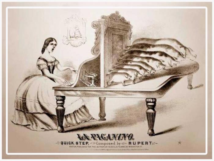 Король Франции Людовик XI был личностью не из приятных. Он был подозрителен, мстителен и явно страдал садистскими наклонностями. Монарху однажды взбрело в голову придраться к одному аббату из Бенье. Тот славился тем, что любил и умел создавать различные музыкальные инструменты. Людовик заказал ему сделать для него свиную фисгармонию или пиганино (свинонино). Инструмент должен был создавать музыку, используя визг тщательно отобранных свиней.