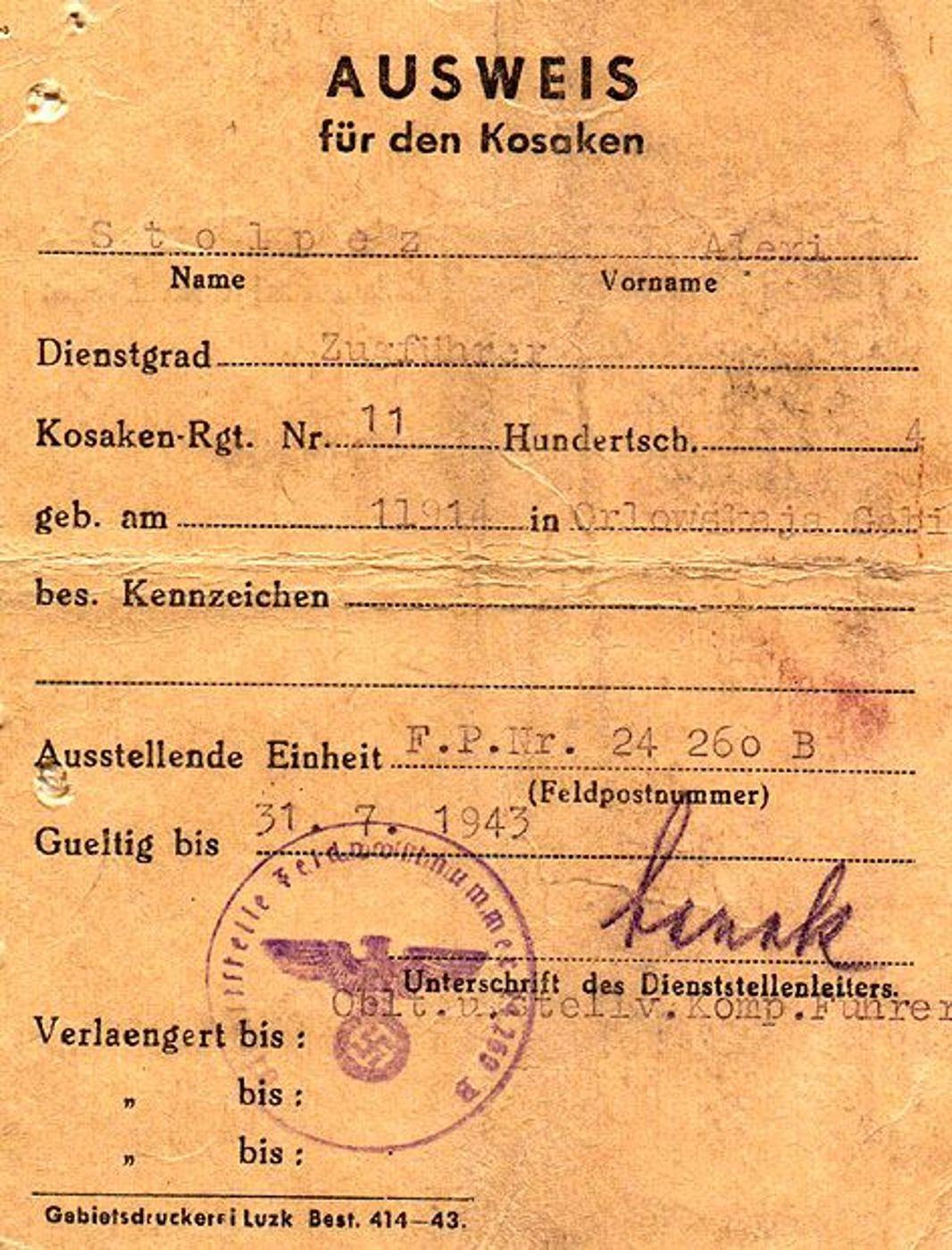 Аусвайс казака.