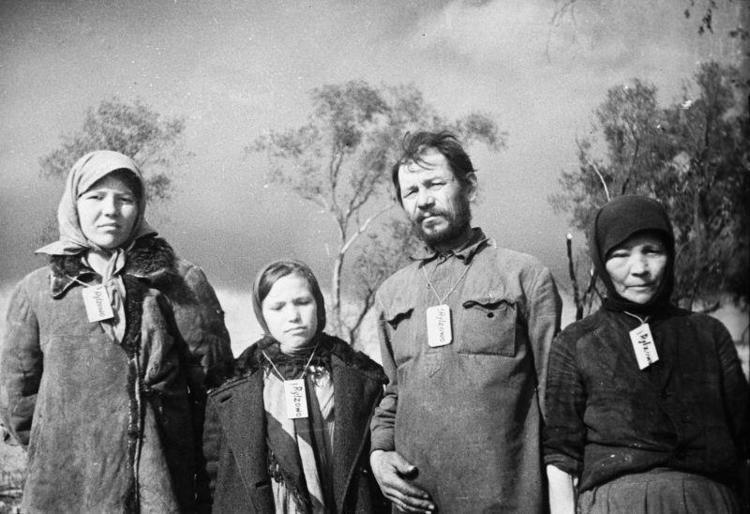 Советские колхозники с бирками на шее - такой аусвайс
