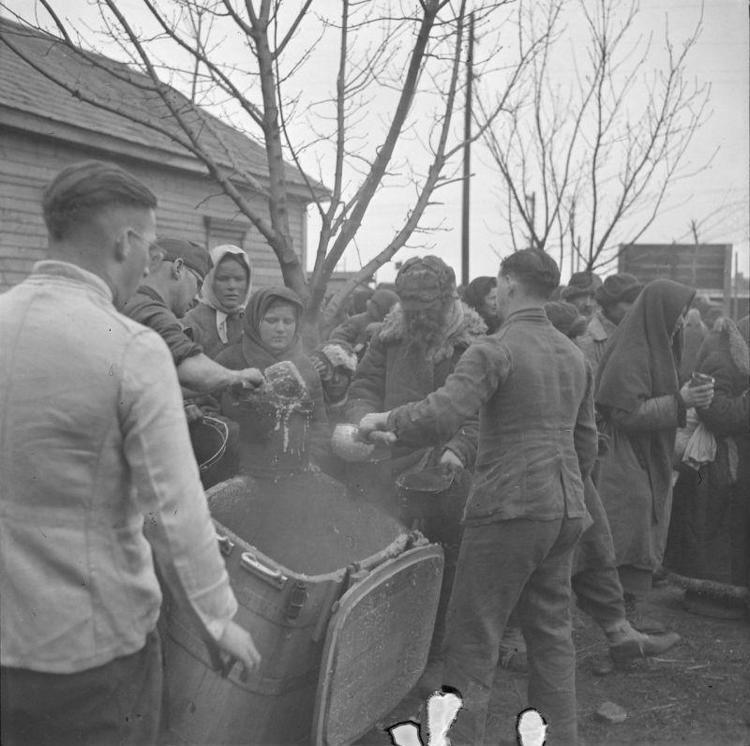 Фото для роты пропаганды - раздача пищи. На одно такое фото - сотни с реквизицией у местных жителей кур, овец, свиней и коров...