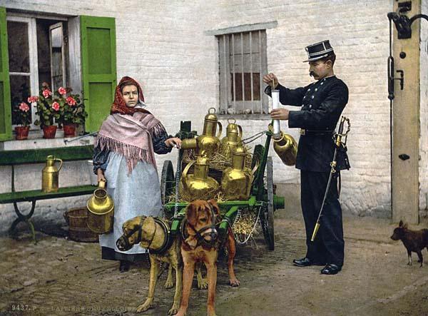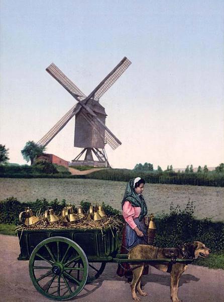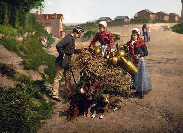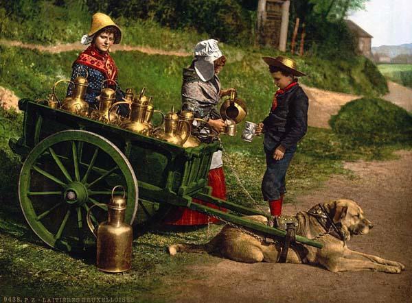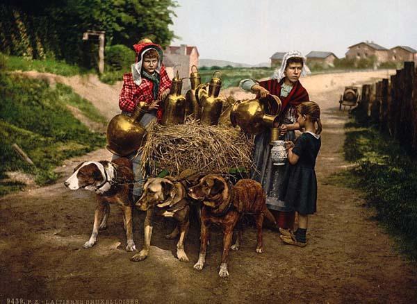 Попалась серия раскрашенных фото - с бельгийскими продавщицами молока (хотел написать - молочницами, но термин устарел и теперь вместо молодух с молоком публика начнет думать о грибковом заболевании с тем же названием) и их трудовыми песелями.