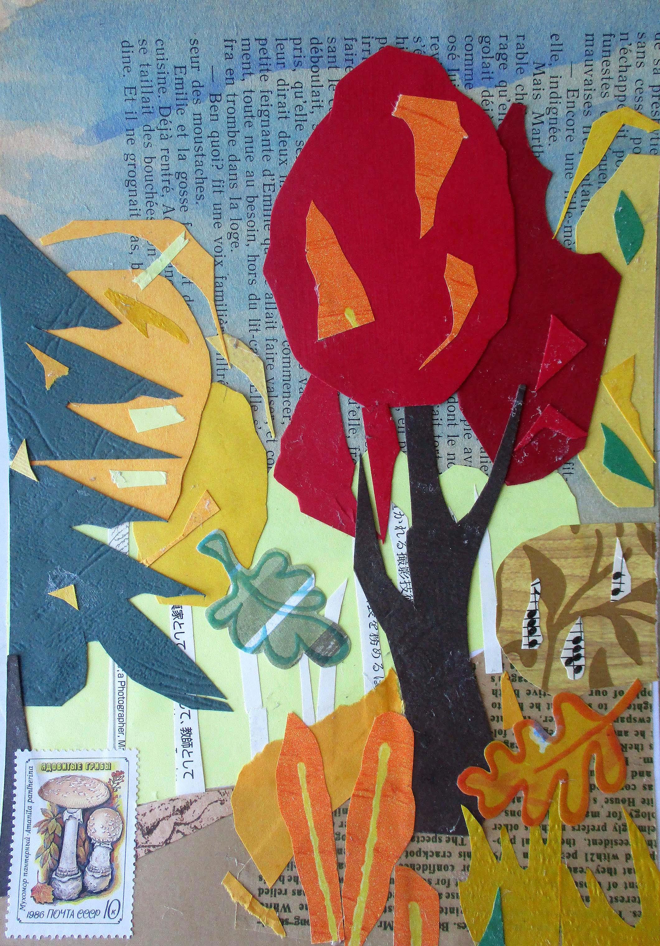 А вторым стал очередной коллажный флешмоб, или точнее октябрьский творческий челлендж "Осень в лесу" - финальный из челленджей с сезонными иллюстрациями.  Как всегда Ирина вначале разослала участницам одинаковые наборы материалов, а потом 1 октября объявила задание, которое нам предстояло выполнить.