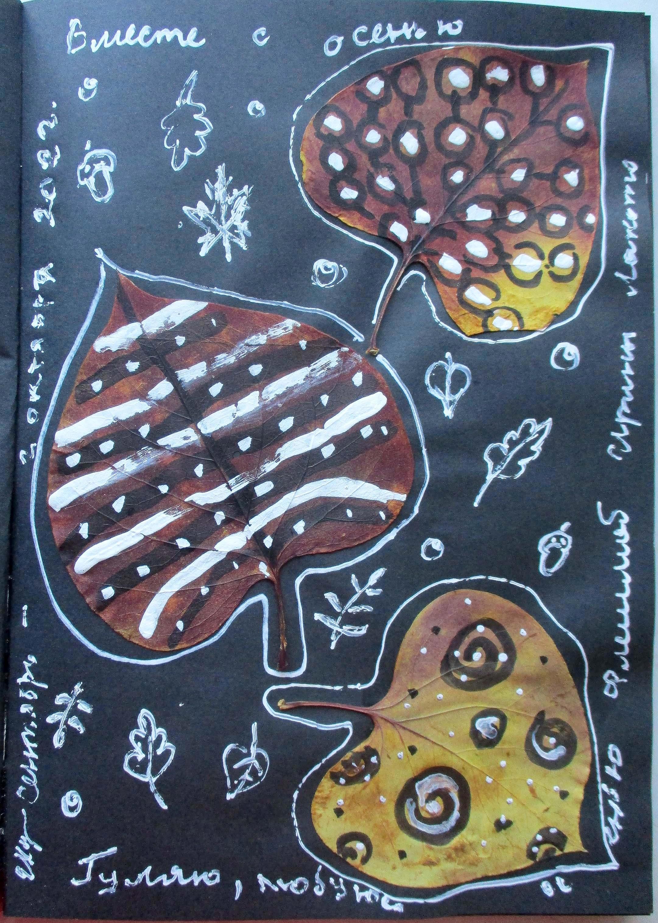 Погода тогда нас ещё баловала мягким теплом и светом. От этого гулять по заданию флешмоба было особенно приятно. Заканчивался флешмоб 2 октября, но я не стала откладывать его выполнение на последний день и разрисовала листья в первый день октября.