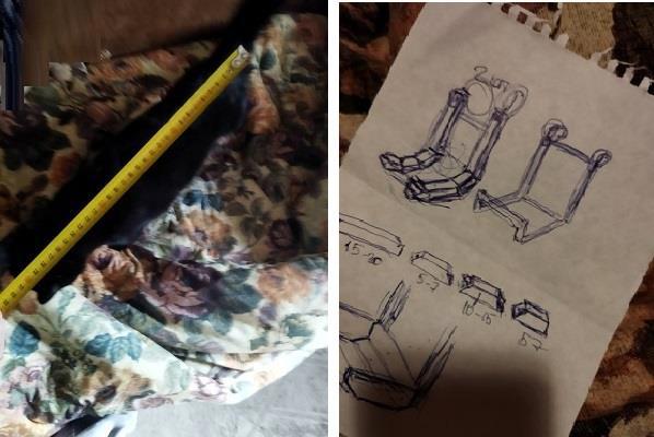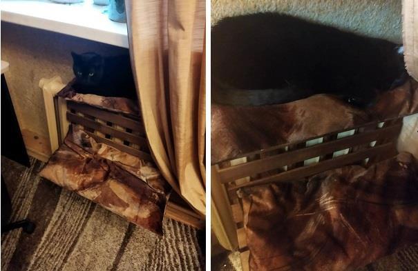 Включенное отопление существенно снизило любовь котов к хозяйке, но оно же поставило, и довольно остро, вопрос создания  кошачьего ложа на батарее.  Итак, делюсь методикой.  Для начала необходимо замерить кота и батарею,  и составить чертёжик  будущего творения. У меня это две опоры и прибитые сверху планки, позволяющие котам лежать и на батарее, и сбоку.