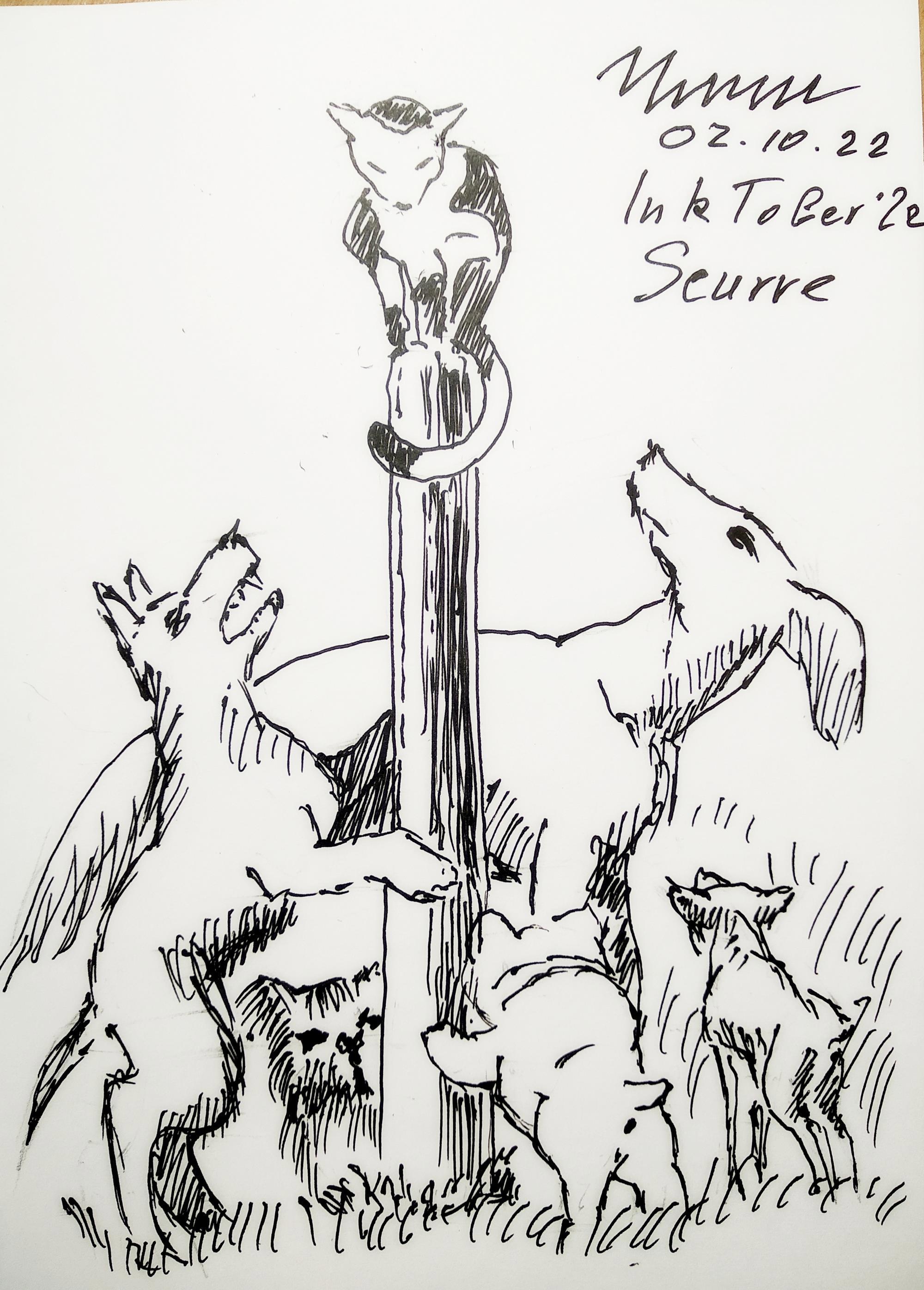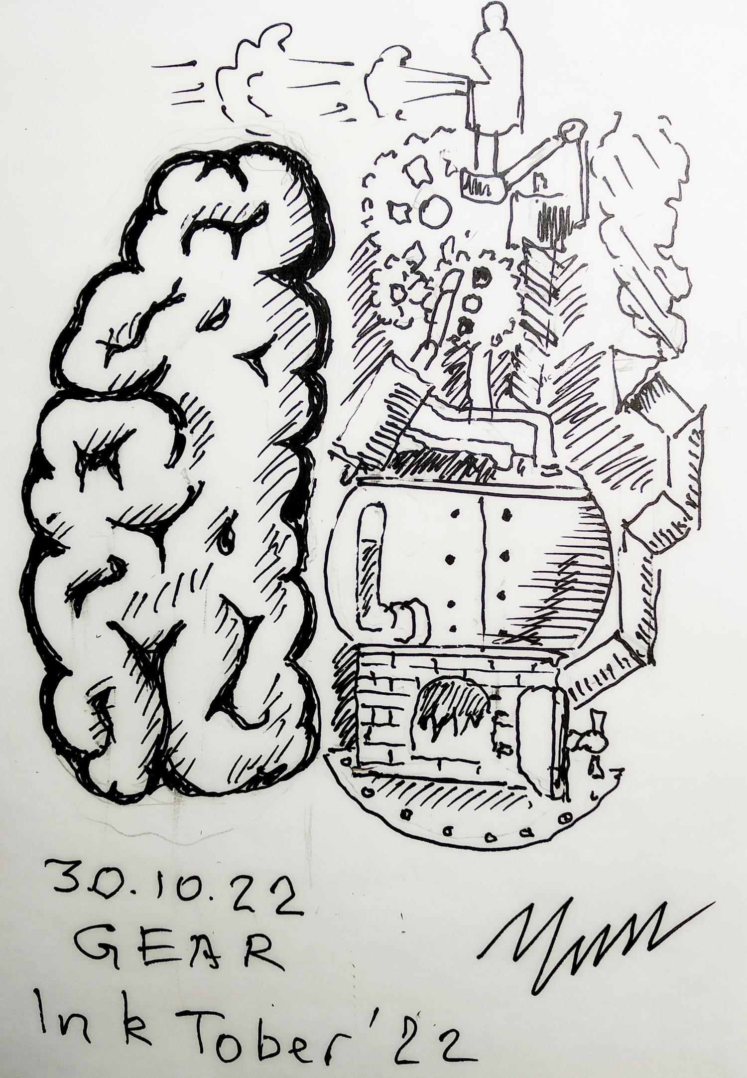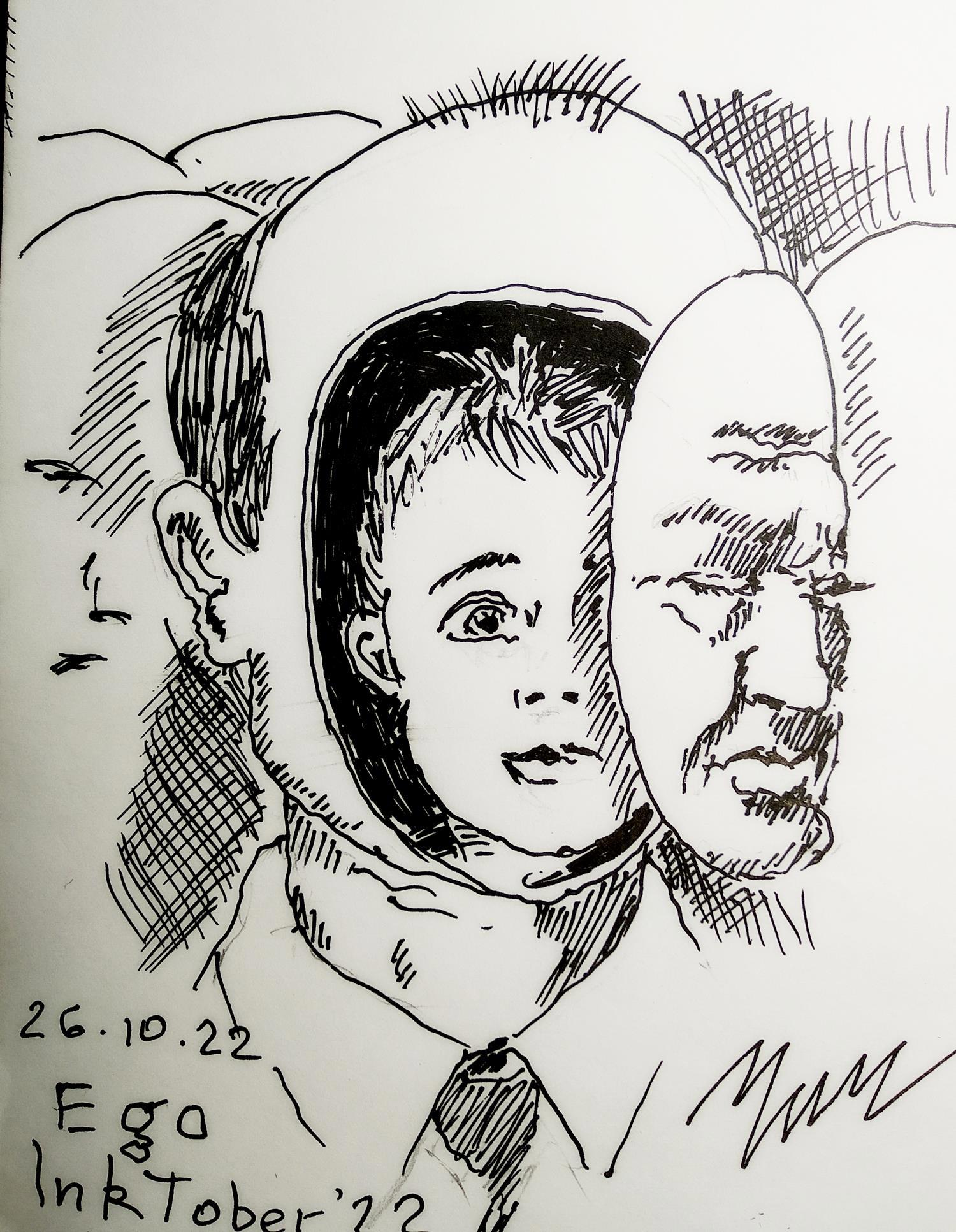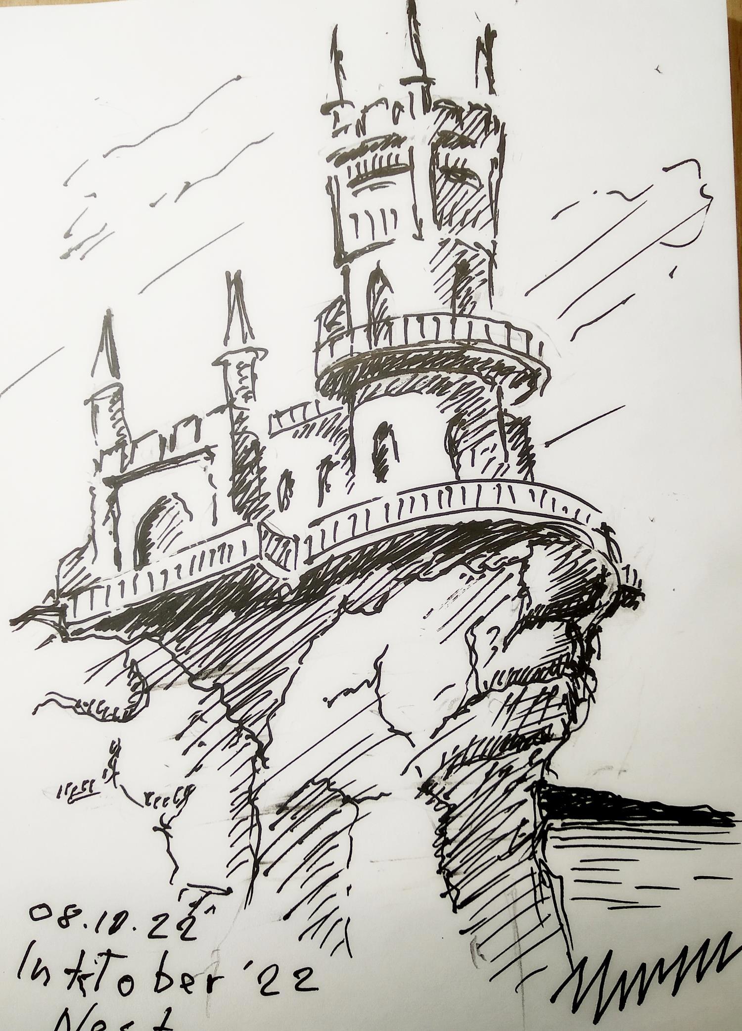Размер - А5. Миллиметровая гелевая ручка. В одном эскизе добавил цвета.