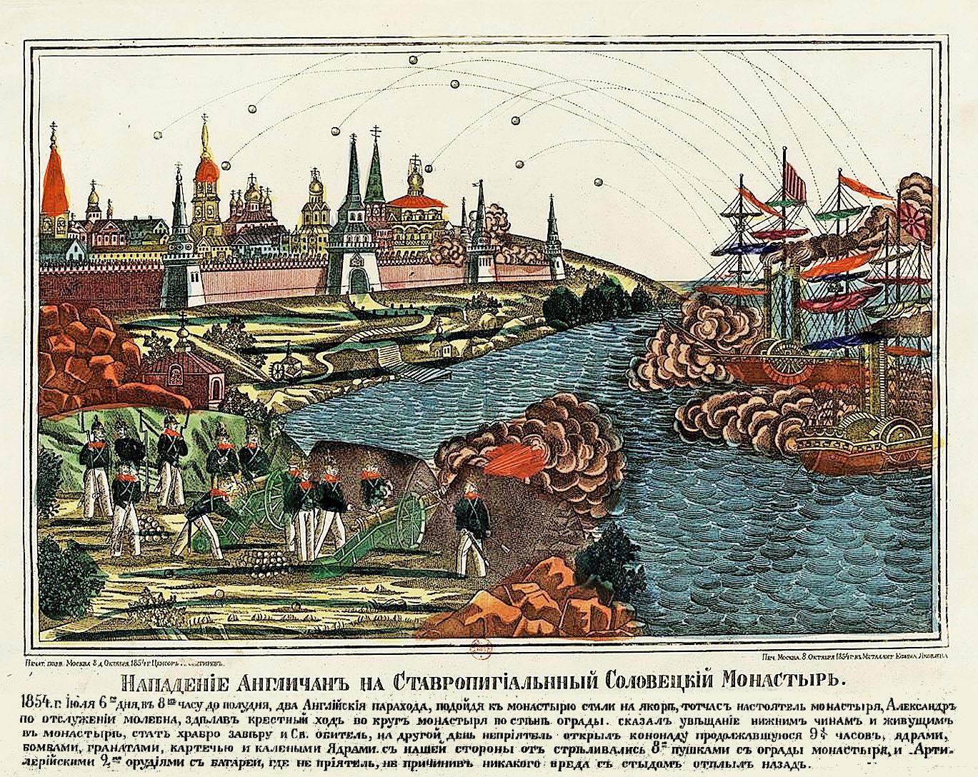 Автор: Николай БергОченно мне понравилось, как английские лорды напали на Соловецкий монастырь в период Восточной войны, которую у нас сдуру называют Крымской. Какая она Крымская. если англичане лезли и на Санкт-Петербург (где нарвались на морские мины и сразу остыли в рвении) и Петропавловск штурмовали и на Север гадили как могли и вообще-то имели целью морскую блокаду России по всем морям.