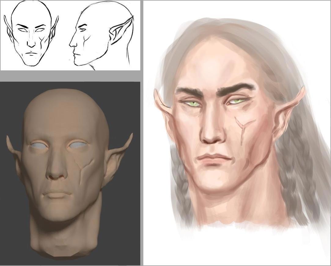 Шаг третий - первый скетч. Судя по итоговому выражению лица, происходящее уже порядком его достало)))